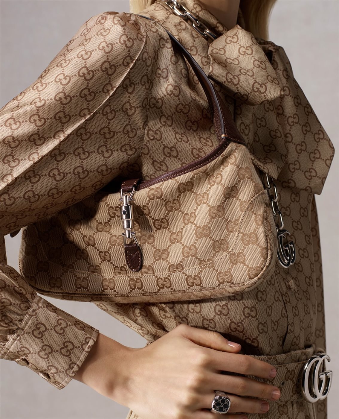 إلى جانب ذلك، تحضر لمسات Gucci Beauty ضمن أجواء الحملة، لتكتمل الصورة الجمالية التي تعكس هوية الدار الشاملة، حيث لا تقتصر الفخامة على الأزياء والإكسسوارات، بل تمتد إلى عالم الجمال والتعبير الشخصي. هذا التكامل بين الموضة والجمال يعزز رؤية غوتشي كعلامة تقدم أسلوب حياة متكامل، لا مجرد قطع منفصلة.
