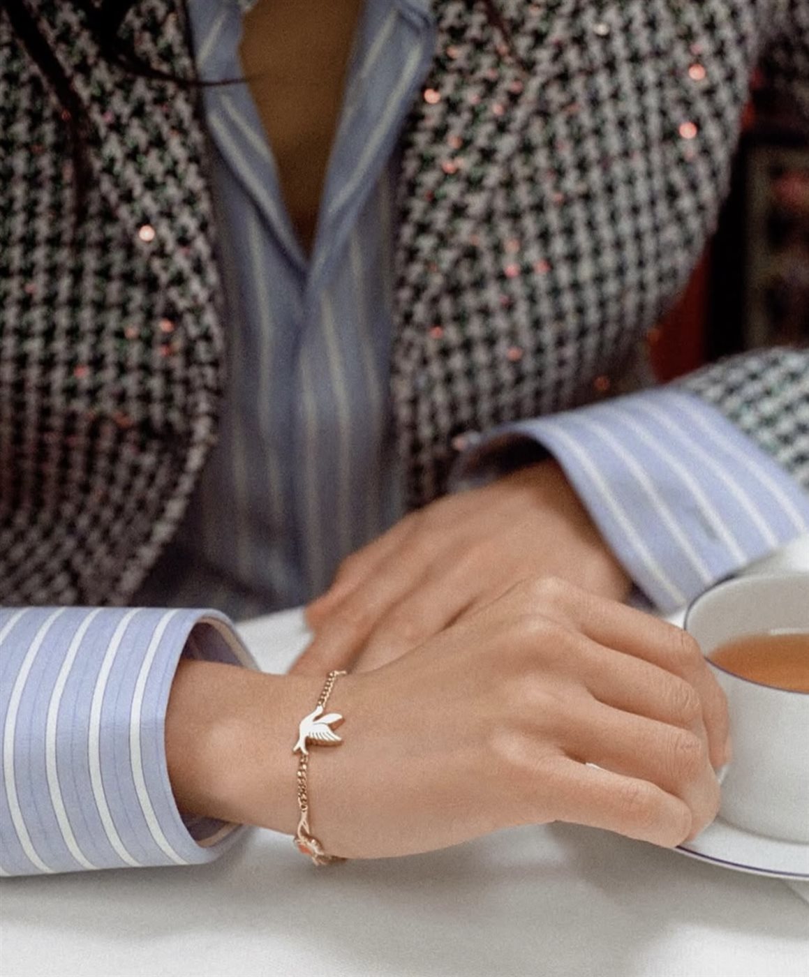 وتبرز الحقائب كقطع مركزية في الكولكشن، إذ تتداخل النقوش النباتية مع تفاصيل مستوحاة من الطبيعة، في تكوين أقرب إلى لوحة فنية مطرزة. الألوان الهادئة والتباينات المدروسة تمنح التصاميم عمقاً بصرياً، فيما تعكس الحرفية العالية التزام الدار بإتقان التفاصيل. كذلك، تضيف المجوهرات المختارة لمسة مكملة، تعزز من فكرة الإطلالة المتكاملة لعيد الحب، حيث يلتقي الرقي بالرومانسية في تناغم مدروس.