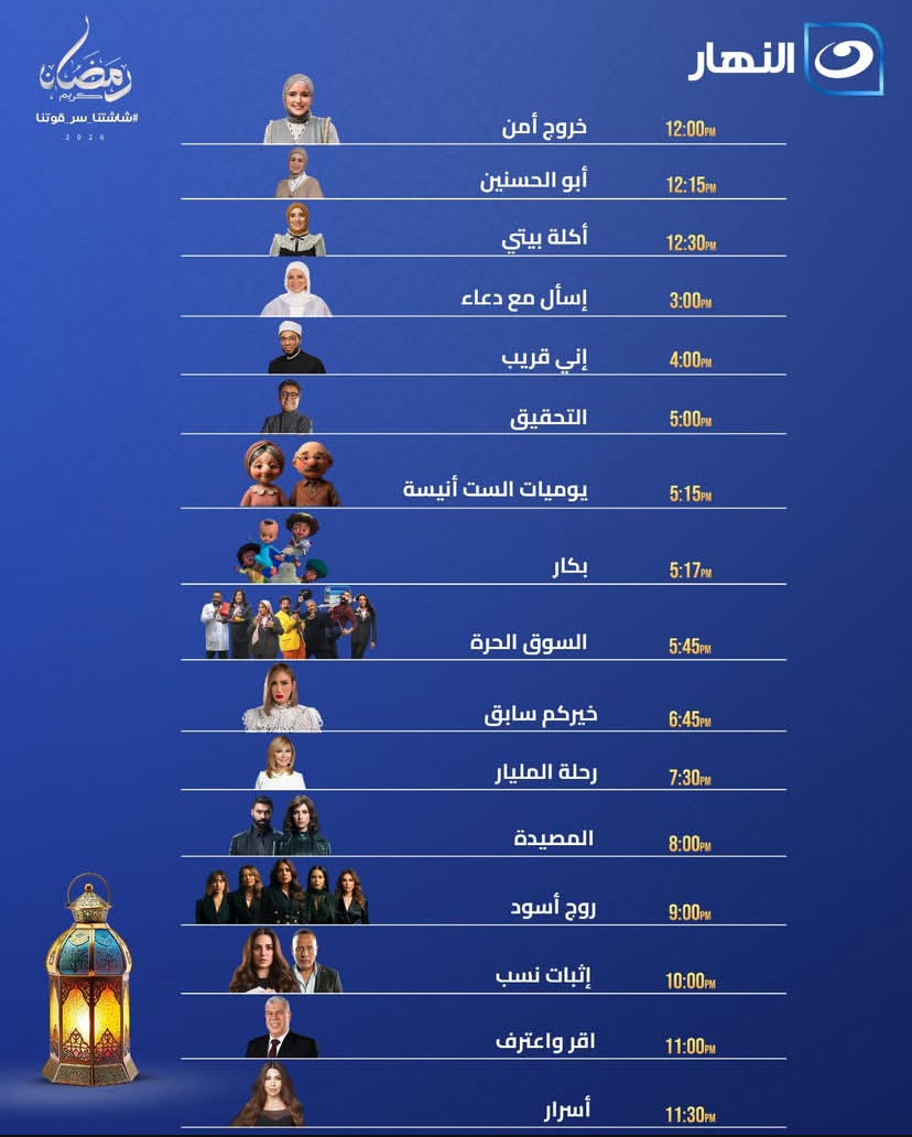 مواعيد مسلسلات رمضان 2026 على قناة النهار