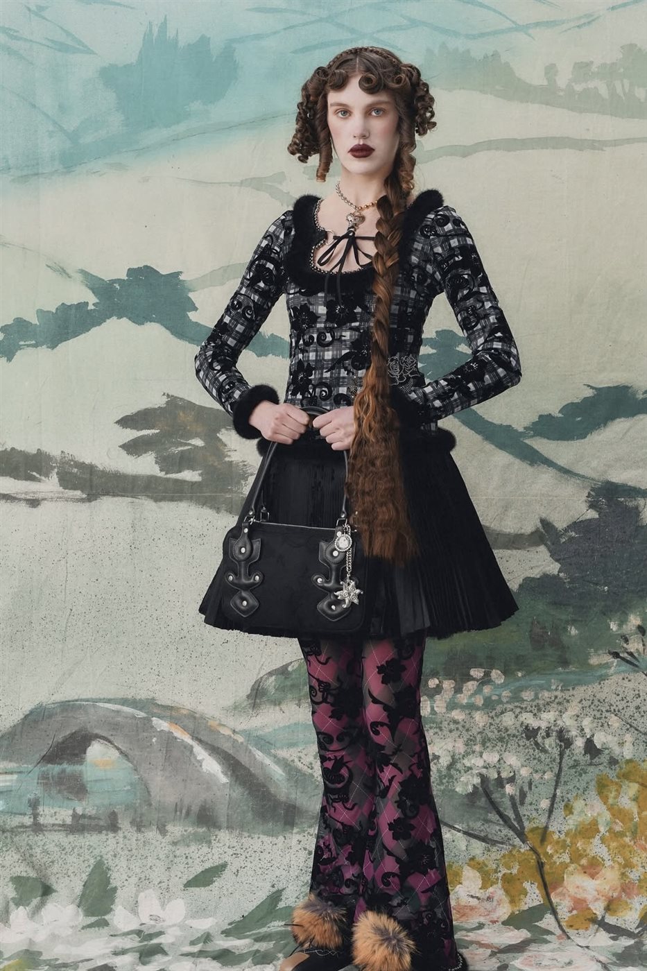 وقد استلهمت المجموعة الكثير من عناصرها من أزياء القرن التاسع عشر، حيث ظهرت تفاصيل كلاسيكية واضحة مثل فتحات الرقبة المربعة الواسعة والقصّات التي تبرز بنية الجسم بطريقة درامية، وهو ما منح الإطلالات طابعاً أرستقراطياً يعيد إلى الأذهان أناقة تلك الحقبة. لكن في المقابل، لم تتخلَ Chopova Lowena عن روحها العصرية المتمردة، إذ أضافت لمسات مستوحاة من أجواء ملاعب الغولف، ما خلق تصادماً بصرياً مقصوداً بين الرقي الكلاسيكي والطابع المرح غير الرسمي.