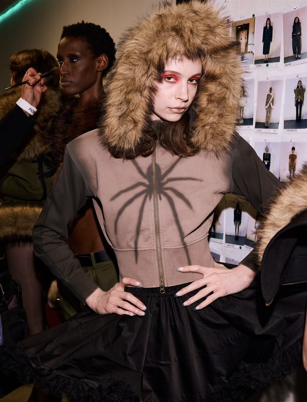 كما أضاف رمز العنكبوت بعداً سردياً للمجموعة، إذ بدا وكأنه خيط يربط بين القطع المختلفة ويمنحها هوية موحدة. فالتصاميم بدت وكأنها تحكي قصة تتنقل بين الرقة والصلابة، وبين الحماية والانكشاف، ما جعل العرض أقرب إلى تجربة فنية متكاملة. وقد ساعدت هذه الرمزية على تعزيز حضور العلامة كصوت إبداعي مستقل داخل مشهد الموضة العالمي.