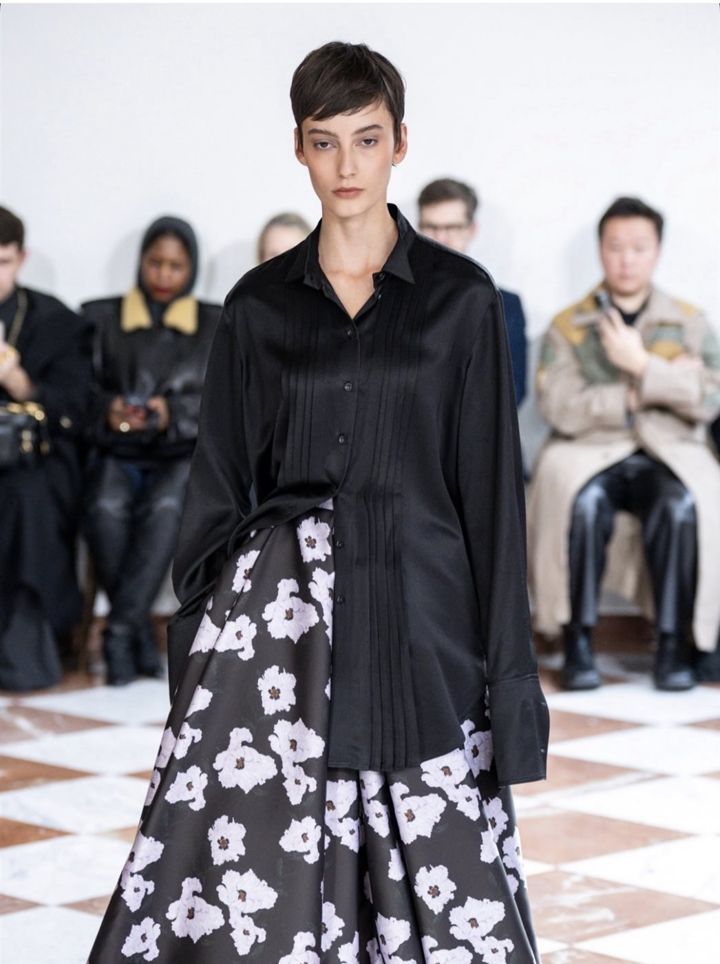 وقد استلهمت المصممة مجموعتها من قصة الفنانة الفرنسية Fano التي تعود إلى عشرينيات القرن الماضي، وهي شخصية اضطرت للتنكر بزي رجل كي تتمكن من دخول عالم النحت في زمن كان يفرض قيودًا صارمة على النساء. هذا البعد القصصي انعكس بوضوح على تصاميم المجموعة، حيث حضرت الروح الأندروجينية في القمصان والجاكيتات المشدودة، إلى جانب تفاصيل تصميمية تشير إلى التحرر وكسر القوالب التقليدية. كما استوحت Wickstead عناصر تجريدية من خامات ومواد النحت نفسها، لتخلق رابطًا بصريًا بين عالم الفن التشكيلي وعالم الأزياء.