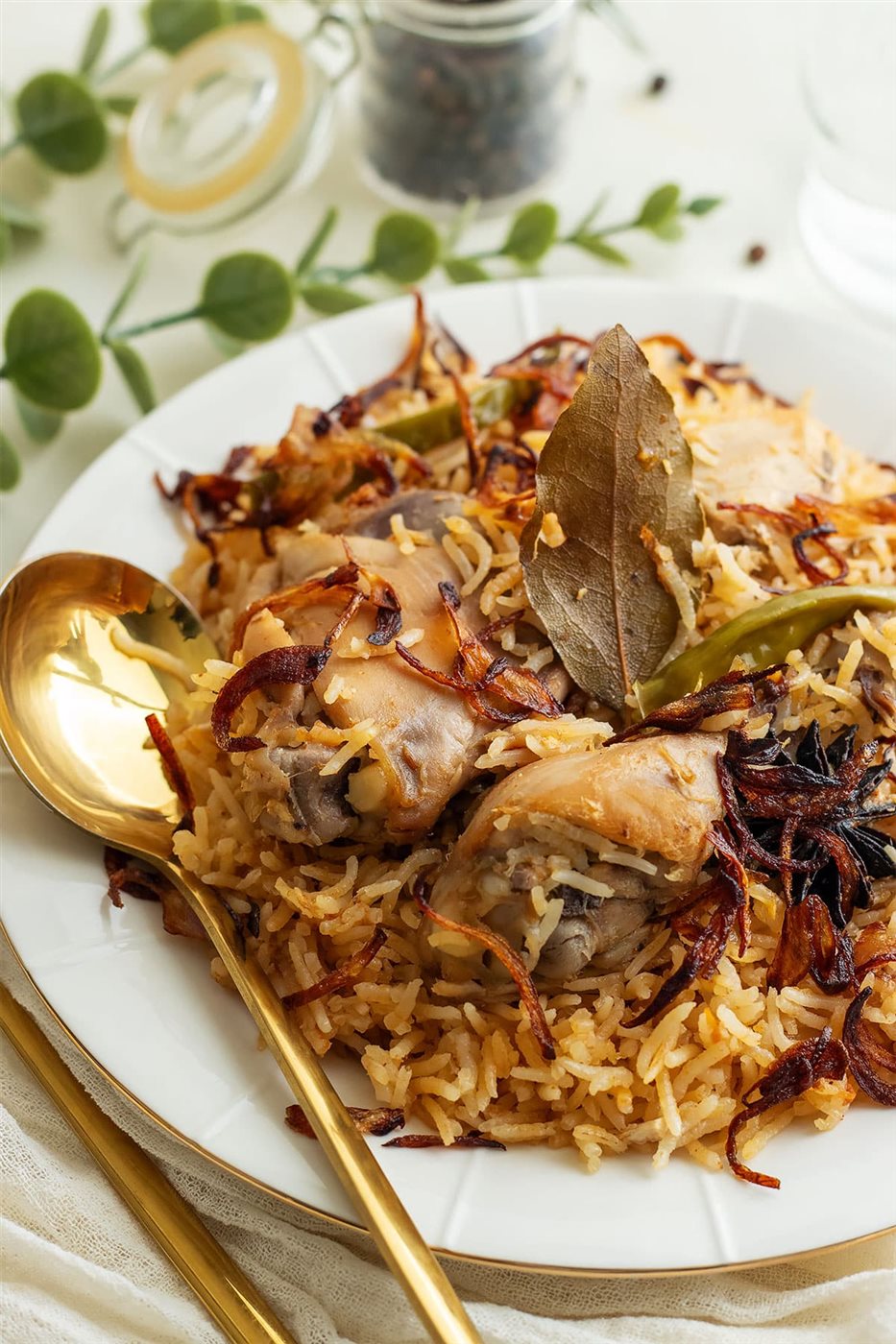 أرز بسمتي: يُعتبر الخيار المثالي لهذا الطبق، بفضل حباته الطويلة وملمسه الخفيف وقدرته على امتصاص نكهة اليخني دون أن يصبح لزجًا.