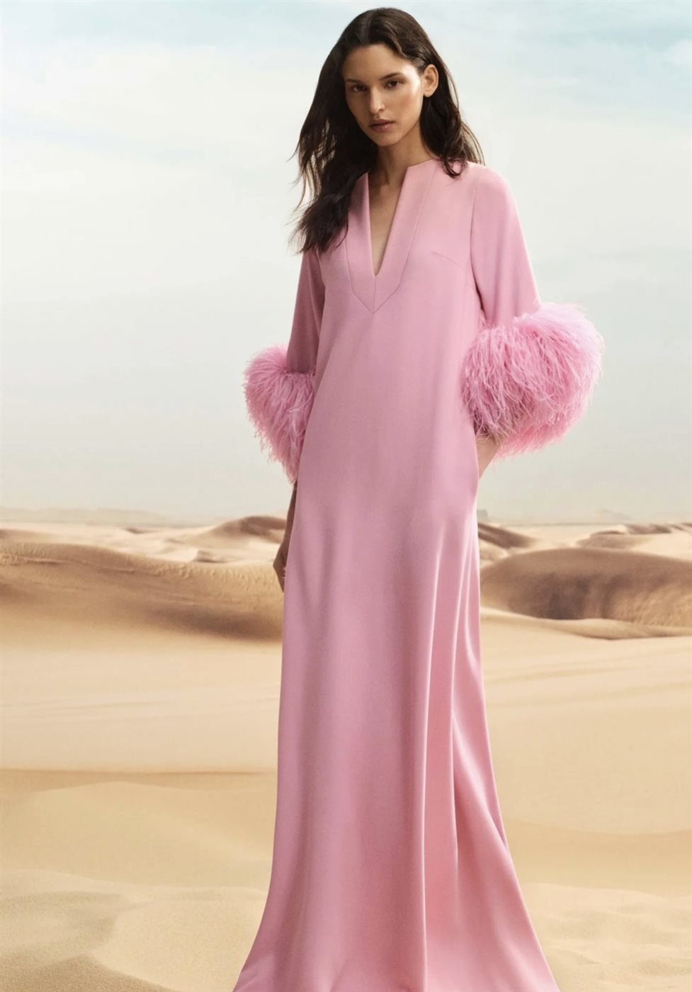 وقد استلهمت المجموعة رؤيتها من الجمال الهادئ لواحات الصحراء، تلك المساحات التي تجمع بين الصفاء الطبيعي والضوء المتغيّر على مدار اليوم. هذا الإلهام انعكس بوضوح في لوحة الألوان التي اختارتها الدار، والتي تمزج بين درجات الكريمي، والبرونزي الوردي، والياسمين، والمرجاني، لتعبّر عن تحوّلات الضوء من الصباح حتى المساء. هذه الألوان الهادئة تمنح القطع طابعاً ناعماً ومتوازناً، وتنسجم مع أجواء رمضان التي تتسم بالسكينة والرقي.