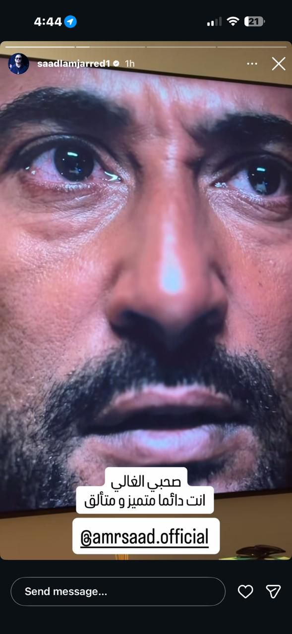 أعرب النجم سعد لمجرد عن إعجابه بالنجاح الذي يحققه النجم عمرو سعد من خلال مسلسل إفراج الذى يعرض في موسم رمضان الجاري، ونشر ستوري علي انستجرام علق عليها قائلًا: صاحبي الغالي انت دائمًا متميز ومتألق.