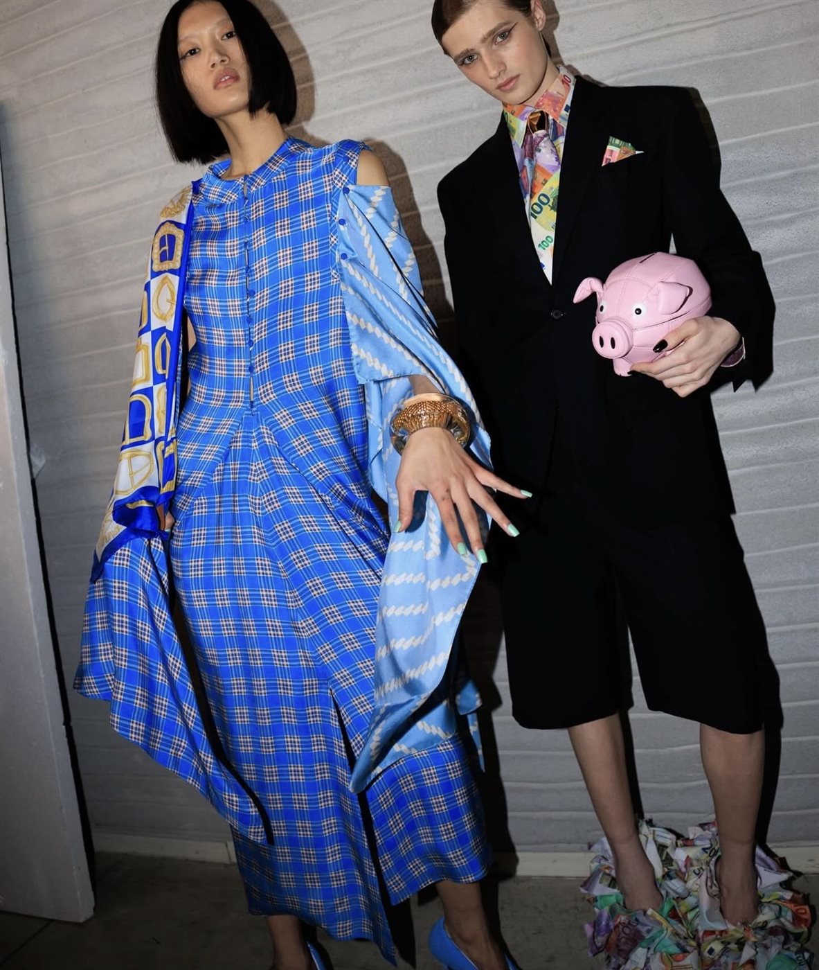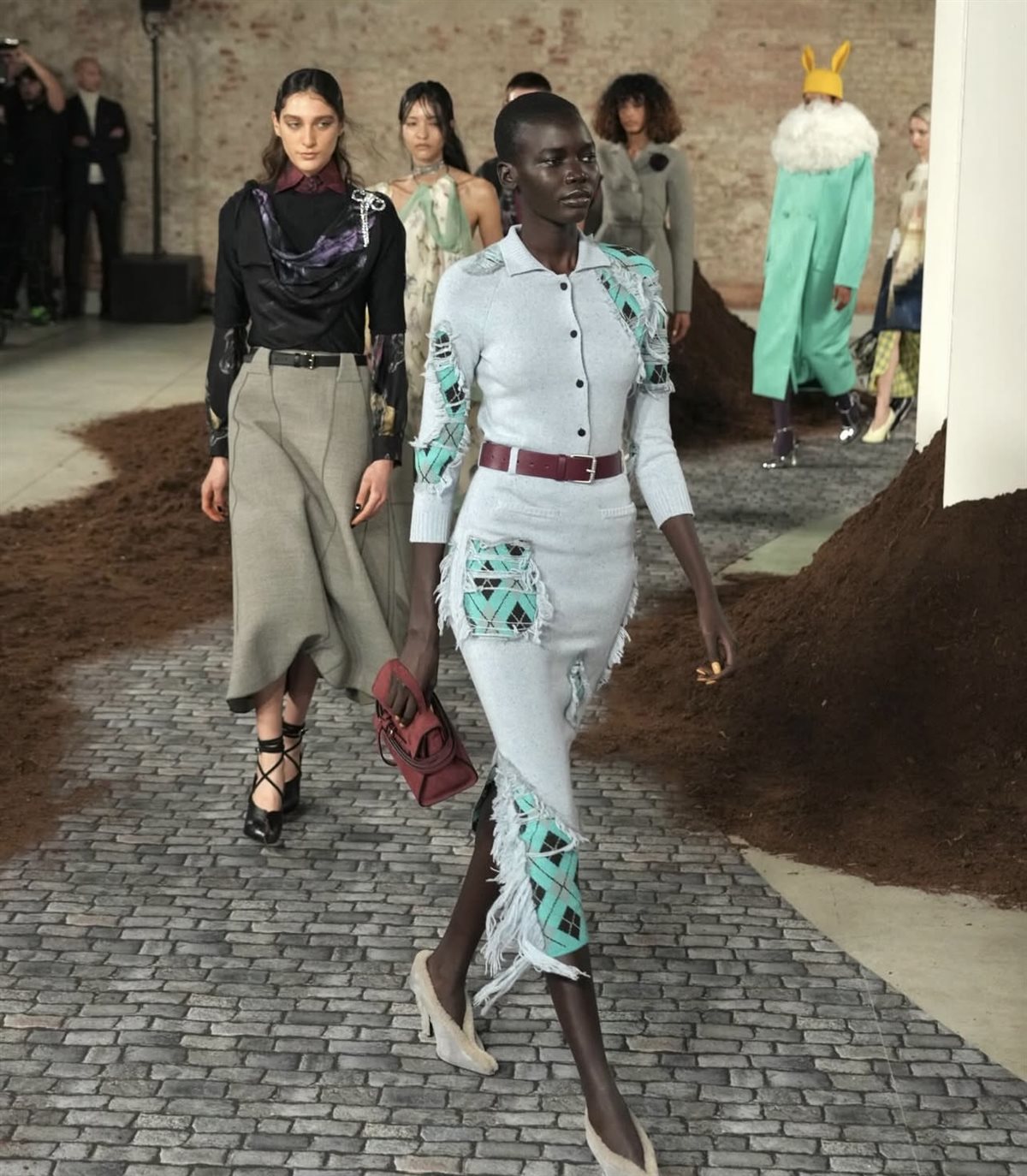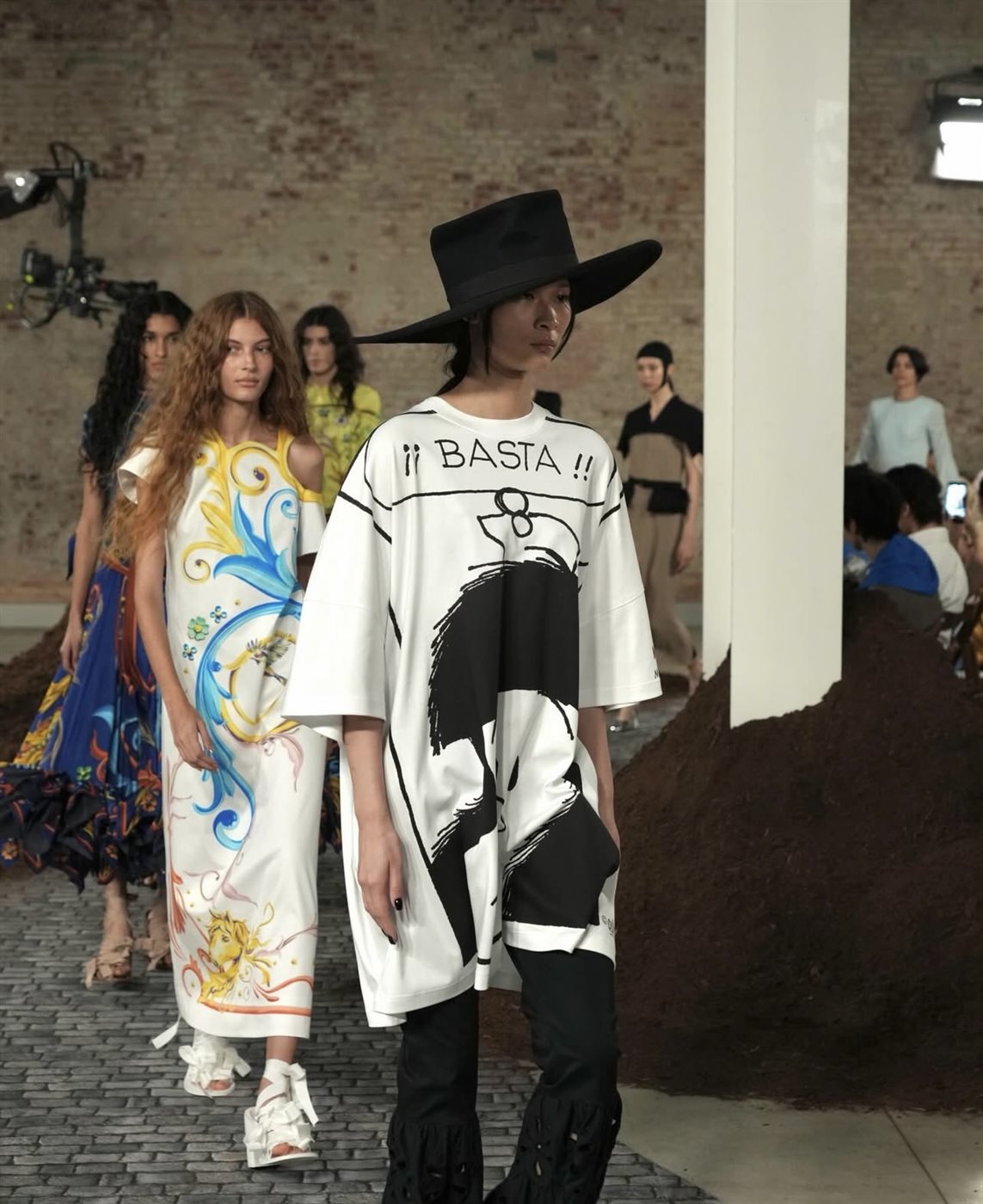 وقد اعتمد أبيولازا على استحضار تفاصيل الحياة اليومية التي عاشها في سنواته الأولى، فظهرت الإطلالات وكأنها قصص بصرية تحمل دفئاً عاطفياً واضحاً. لم تكن الذكريات هنا مجرد عنصر زخرفي، بل تحوّلت إلى رموز تصميمية تعبّر عن العلاقة بين الماضي والحاضر. القصّات جاءت متنوعة بين الخطوط المريحة واللمسات الجريئة التي تشتهر بها موسكينو، بينما عكست الألوان والخامات إحساساً بالحميمية والنوستالجيا، وكأن كل قطعة تروي حكاية شخصية لكنها قابلة لأن يتماهى معها الجمهور.