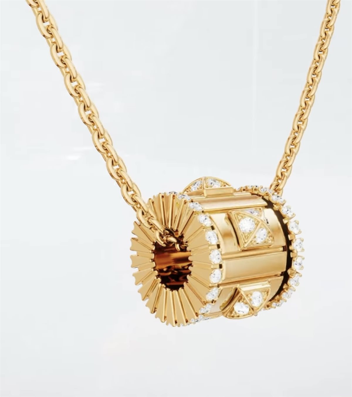 ومن الجوانب المميزة في هذا التصميم أيضاً استلهام تقنيات دقيقة من عالم صناعة الساعات السويسرية، حيث تعتمد القلادة على آلية دوران متقنة تضمن حركة سلسة ومتوازنة. هذا الدمج بين تقنيات الساعات الراقية وتصميم المجوهرات يعكس مستوى عالياً من الابتكار الهندسي، ويؤكد اهتمام مارلي بالتفاصيل الدقيقة التي تمنح قطعها طابعاً فريداً.