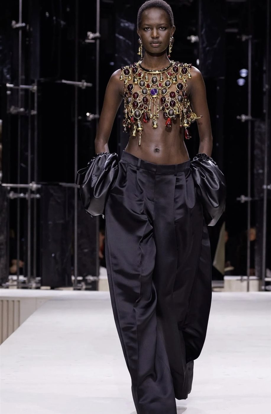 كما لعبت الإكسسوارات دوراً مهماً في استكمال الإطلالات، حيث ظهرت الحقائب الجلدية بتصاميم أنيقة تجمع بين العملية والفخامة، إلى جانب الأحذية ذات الخطوط العصرية التي أضافت لمسة جريئة إلى بعض الإطلالات. وقد جاءت هذه التفاصيل لتؤكد رؤية الدار التي تسعى دائماً إلى خلق توازن بين البساطة المدروسة والجرأة الفنية.