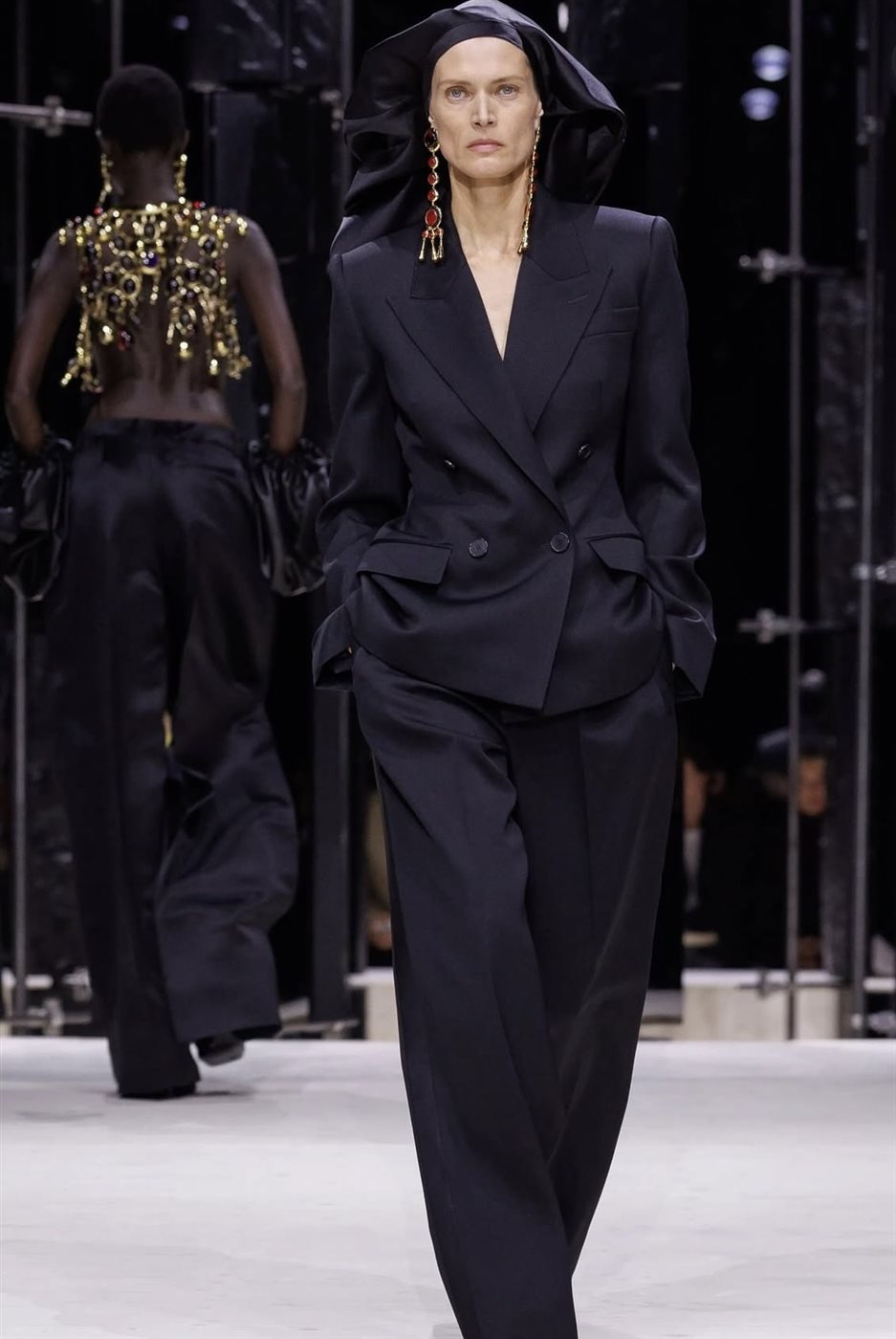 وقد استندت مجموعة خريف وشتاء 2026 إلى فكرة إعادة تفسير الأناقة الباريسية بأسلوب معاصر، حيث برزت القصّات الحادة والخطوط النحتية التي منحت الإطلالات حضوراً قوياً على منصة العرض. وظهرت المعاطف الطويلة المصممة بدقة، إلى جانب السترات ذات الأكتاف المحددة والبناطيل الواسعة التي تعكس طابعاً عملياً وأنيقاً في آن واحد. كما حضرت الفساتين بقصّات بسيطة لكنها مدروسة بعناية، حيث ركزت التصاميم على إبراز جمال الخطوط النظيفة والتفاصيل الدقيقة.