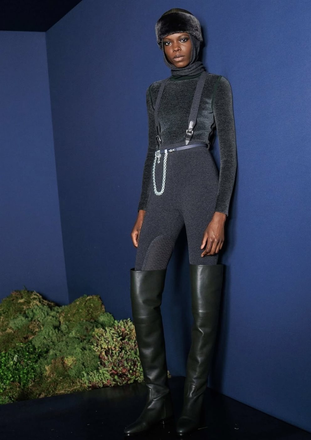 وقد تميّز العرض بمنصة استثنائية مغطاة بطبقة من الطحالب الطبيعية، ما أضفى على أجواء العرض طابعاً هادئاً مستوحى من الطبيعة، في انسجام واضح مع فلسفة الدار التي تميل إلى إبراز الجمال في بساطته. وعلى هذه المنصة، تألقت العارضات بإطلالات تعكس هوية Hermès القائمة على الخياطة المتقنة والخطوط النظيفة، حيث بدت القطع وكأنها مصممة لتمنح المرأة حضوراً قوياً وأنيقاً دون مبالغة.
