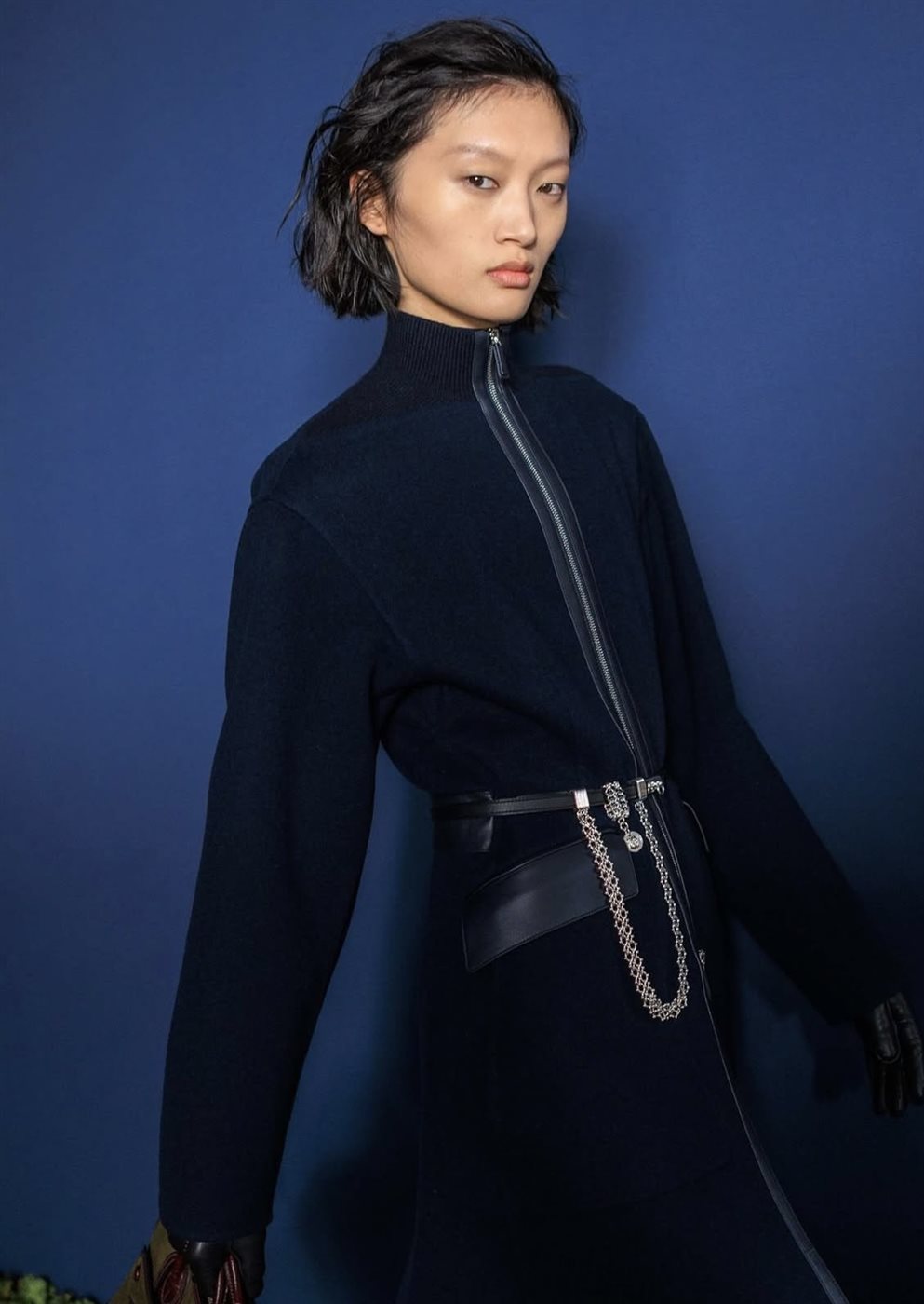 ومن بين العارضات اللواتي شاركن في العرض، لفتت العارضة Alex Consani الأنظار بإطلالة أنيقة تعكس الطابع العصري للمجموعة، حيث تنوعت التصاميم بين المعاطف الطويلة المصممة بدقة، والسترات الجلدية الفاخرة، إضافة إلى البناطيل ذات القصّات الواسعة التي تجمع بين الراحة والرقي. وقد جاءت القطع لتجسد التوازن المثالي بين العملية والأناقة، وهو الأسلوب الذي تشتهر به Hermès في معظم مجموعاتها.