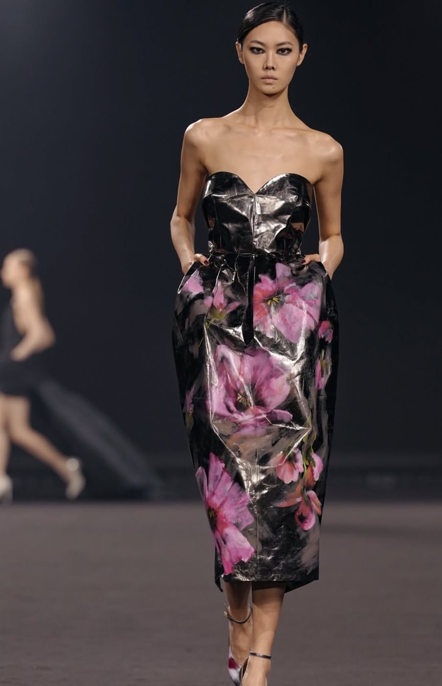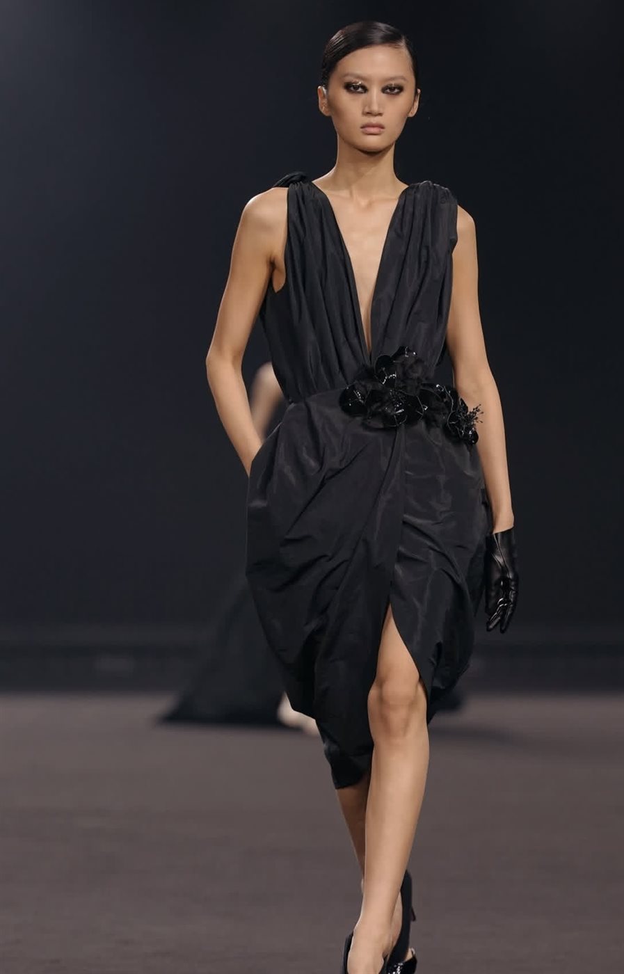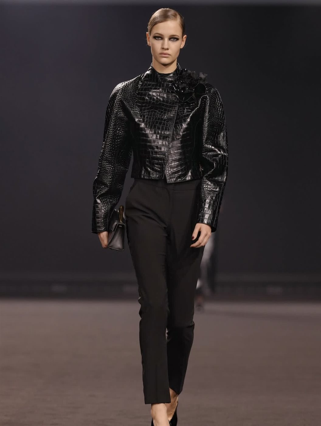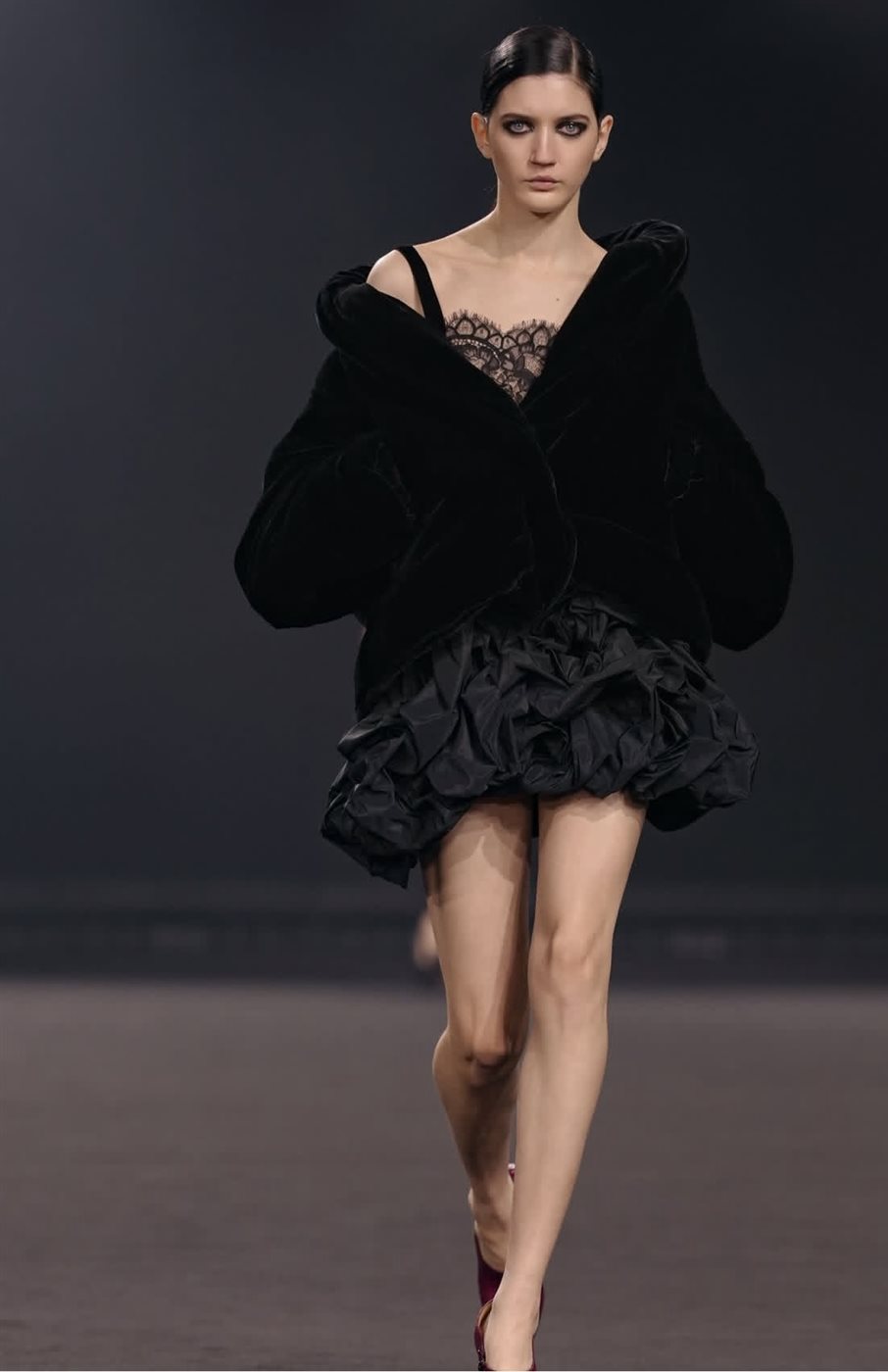 كما ظهرت في العرض مجموعة متنوعة من التصاميم التي تمزج بين الخطوط الكلاسيكية واللمسات الجريئة، حيث برزت المعاطف الطويلة والبدلات المصممة بعناية لتبرز أناقة الخياطة الراقية التي يشتهر بها إيلي صعب. وفي المقابل، جاءت الفساتين بتفاصيل دقيقة وزخارف مستوحاة من الأشكال الزهرية، ما أضفى على المجموعة بُعداً فنياً يذكر بالحركة الفنية التي ازدهرت في نيويورك خلال التسعينات.