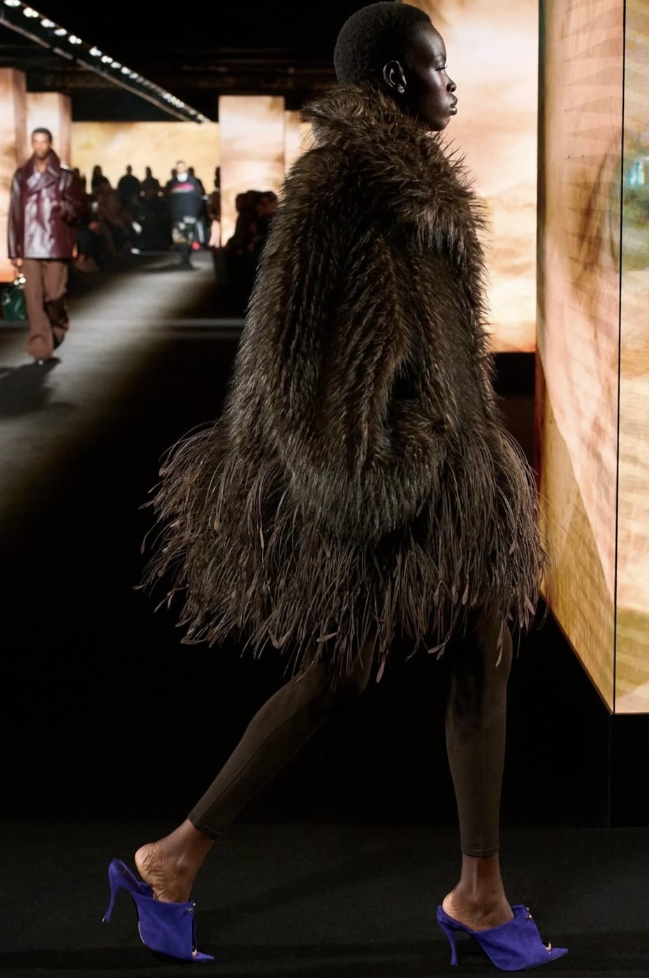 وقد اعتمدت المجموعة على لوحة ألوان يغلب عليها الطابع الداكن، مثل الأسود والرمادي والبني بدرجاته المختلفة، ما منح الإطلالات طابعًا أنيقًا يتماشى مع أجواء الخريف والشتاء. كما ظهرت بعض اللمسات اللونية التي أضافت حيوية إلى التصاميم، لتخلق توازنًا بصريًا بين البساطة والجرأة. أما من حيث الخامات، فقد تنوعت بين الأقمشة الثقيلة التي تناسب الطقس البارد والمواد التقنية الحديثة التي تعكس روح العصر، في محاولة لدمج الوظيفة العملية مع الجمالية الفنية.