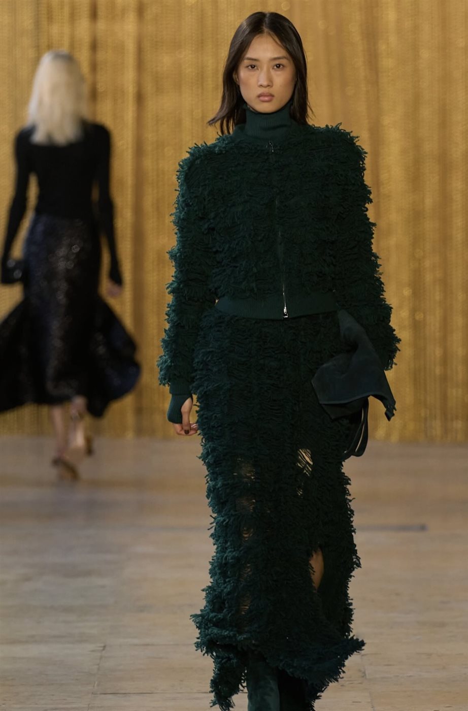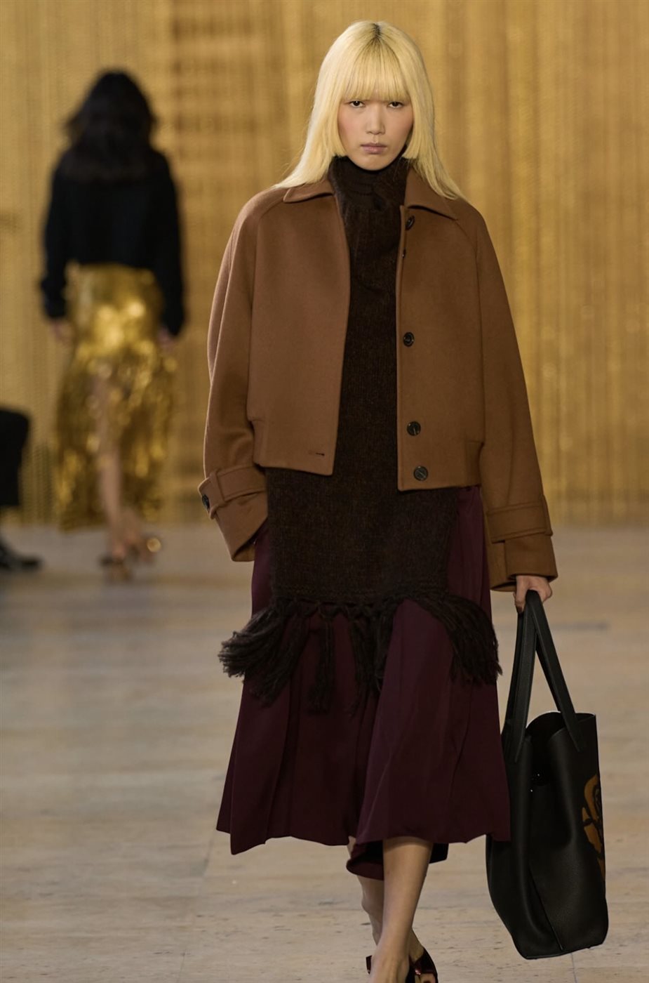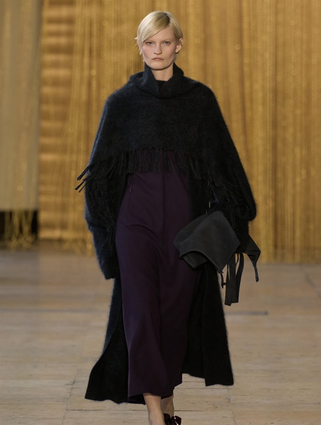 كما لعبت الطبقات دورًا أساسيًا في تشكيل ملامح المجموعة، إذ اعتمد المصمم على تنسيق القطع بطريقة مدروسة تمنح الإطلالات عمقًا بصريًا وأناقة عملية في الوقت نفسه. وظهرت المعاطف الطويلة والبدلات الأنيقة بتفاصيل دقيقة تؤكد اهتمام الدار بالحرفية العالية، فيما جاءت الفساتين بقصّات انسيابية تحافظ على الطابع الكلاسيكي الذي يميز علامة Akris.