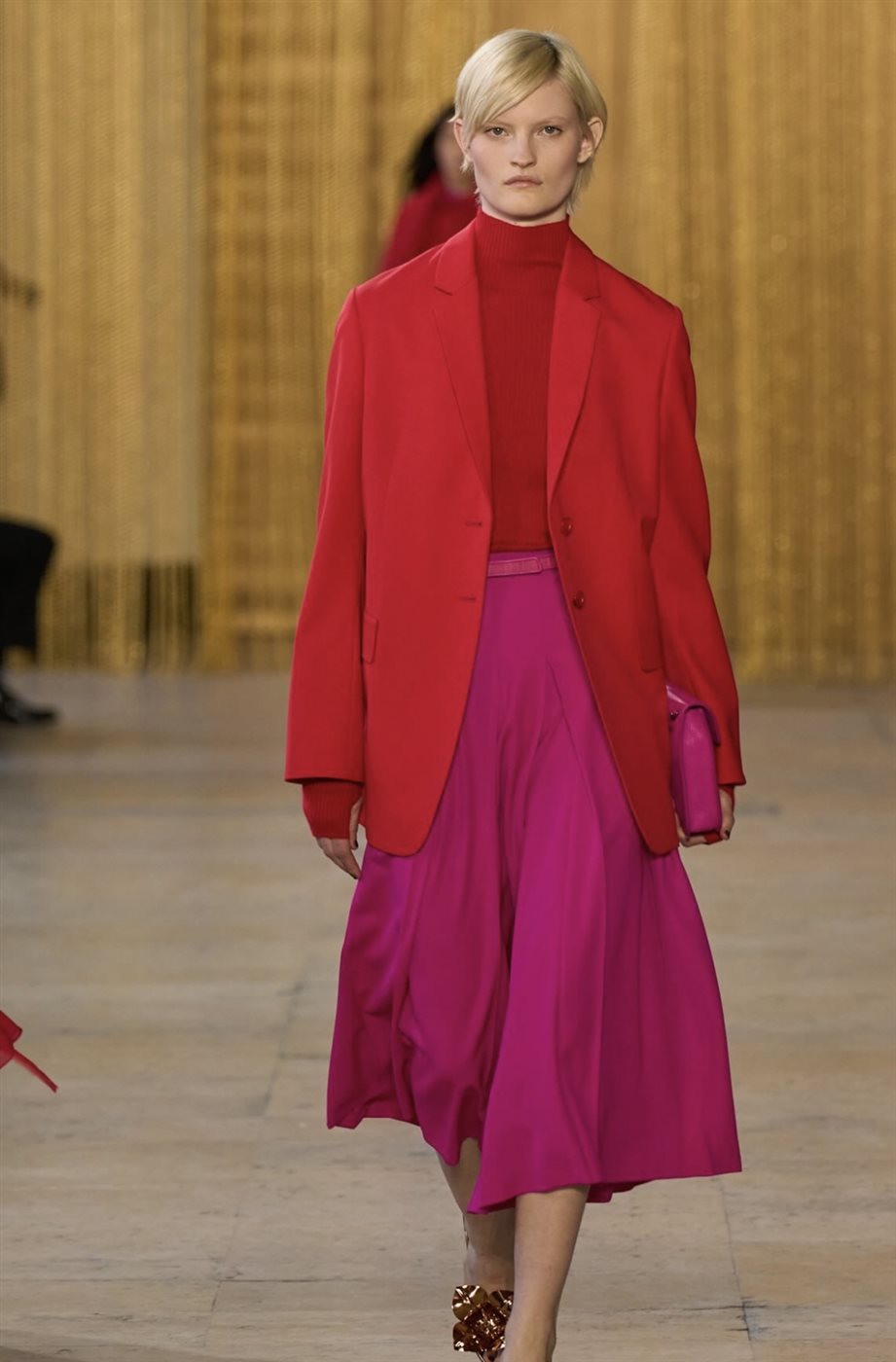أما من ناحية الخامات، فقد استخدم ألبرت كريملر مجموعة من الأقمشة الفاخرة التي تعكس جودة الصناعة السويسرية، وكان من أبرزها الصوف المنسوج بعناية، الذي أضفى على التصاميم إحساسًا بالفخامة والدفء المناسب لموسم الخريف. كما ساهمت هذه الخامات في إبراز البنية الهندسية للقطع، حيث بدت القصّات واضحة ومتقنة بفضل طبيعة الأقمشة المستخدمة.