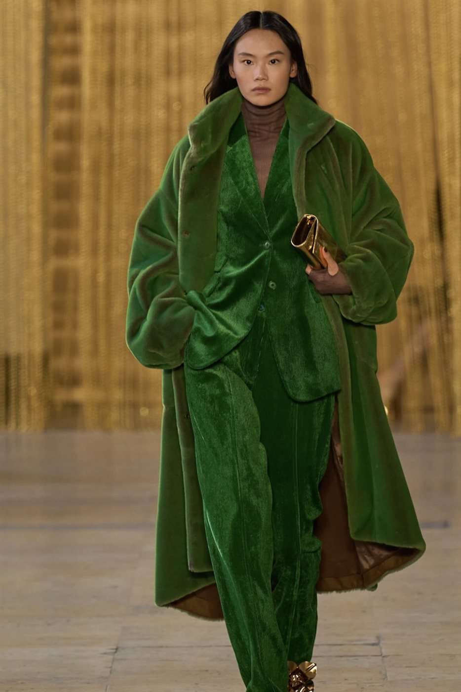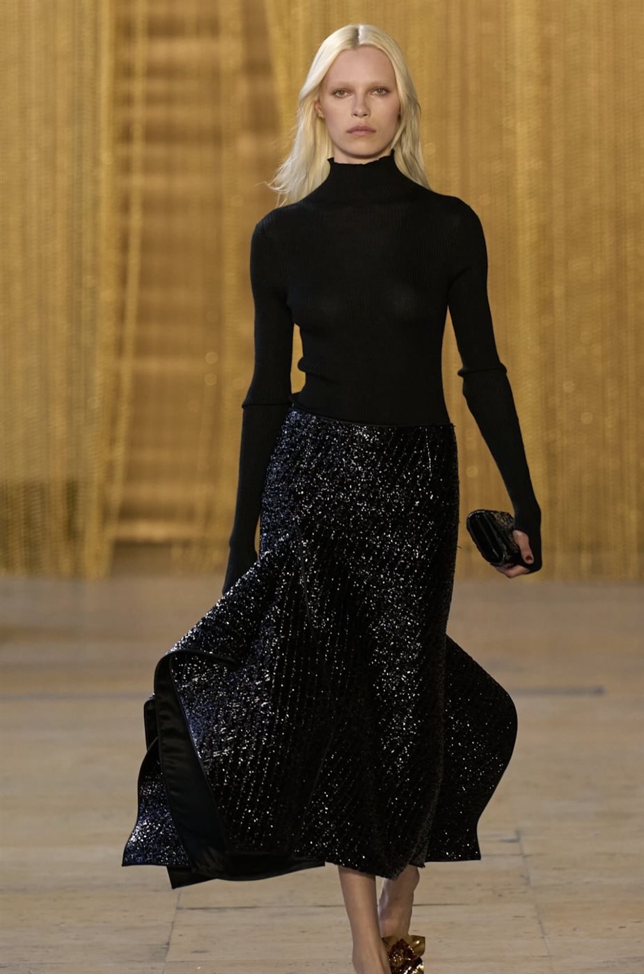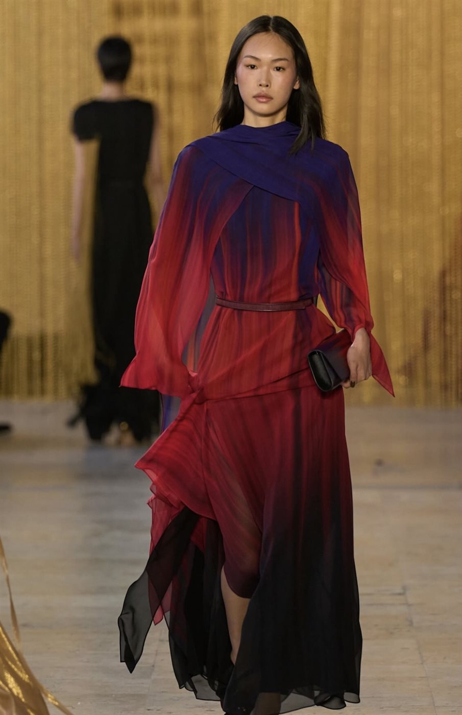 وفيما يتعلق بلوحة الألوان، اختار المصمم درجات دافئة وهادئة تنسجم مع أجواء الموسم، حيث تنوعت الإطلالات بين ألوان طبيعية راقية عززتها لمسات معدنية خفيفة أضافت بريقًا أنيقًا دون أن تفقد التصاميم بساطتها. وقد ساعد هذا التوازن اللوني في إبراز تفاصيل القطع ومنح كل إطلالة حضورًا متزنًا يعكس الذوق الرفيع الذي تشتهر به الدار.