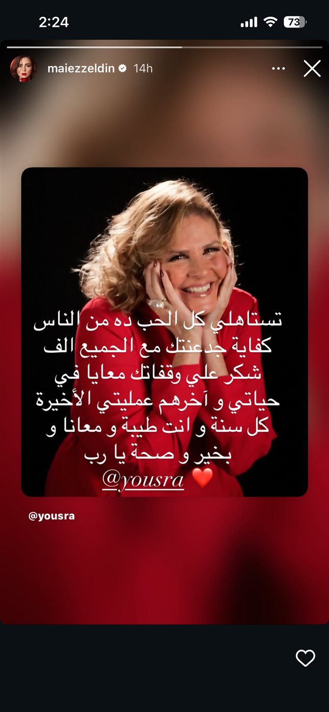 وكتبت مي عز الدين، عبر “ستوري” حسابها الرسمي على موقع الصور والفيديوهات الشهير “إنستجرام”، قائلة: “تستاهلي كل الحب ده من الناس كفاية جدعنتك مع الجميع ألف شكرًا على وقفتك معايا في حياتي وآخرهم عمليتي الأخيرة، كل سنة وانتي طيبة ومعانا وبخير وصحة يارب”.