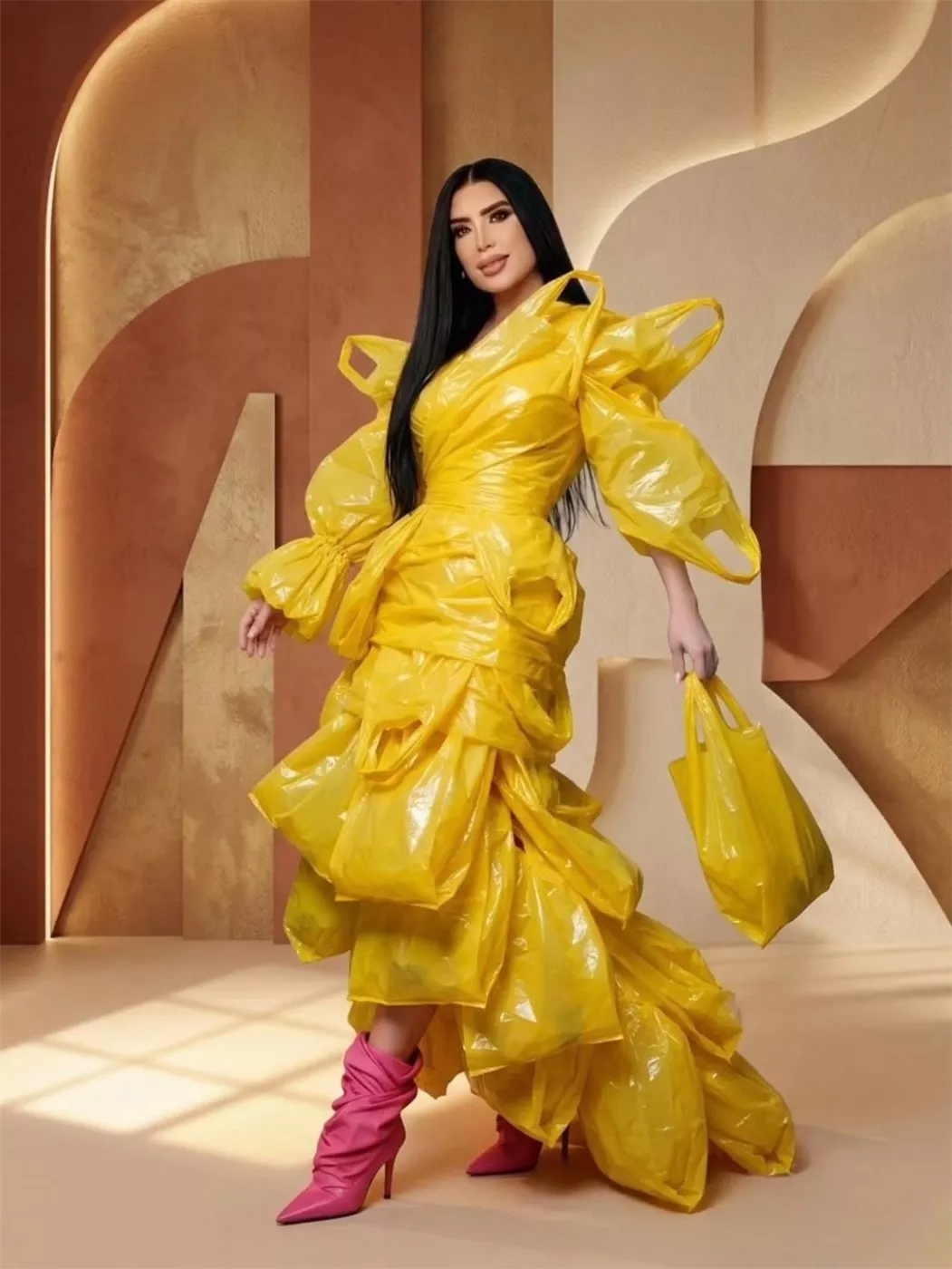 أما احتفال الفنانة عبير صبري بـ عيد الفطر المبارك، جاء على طريقتها المختلفة والغريبة، إذ أنها ارتدت فستان مصنوع من الأكياس البلاستيكية والتي نشرته عبر حسابها الرسمي على “إنستجرام”.