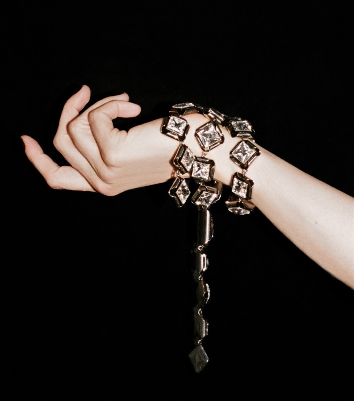 القلادة الجديدة لا تُقدَّم بوصفها قطعة تقليدية من المجوهرات، بل كعمل فني قائم بذاته، يعتمد على فكرة “تفكيك” الكريستال وإعادة تركيبه في هيئة غير متوقعة. تتوزع العناصر الكريستالية بطريقة مدروسة توحي بالعفوية، لكنها في الواقع تخضع لتوازن دقيق بين الشكل والبنية، ما يمنح التصميم طابعًا بصريًا ديناميكيًا يلفت الأنظار. هذا التلاعب بالبنية يعكس فلسفة سارة بيرتون التي لطالما ارتبطت بالجمع بين القوة والأنوثة، وبين الصرامة الهندسية والانسيابية.