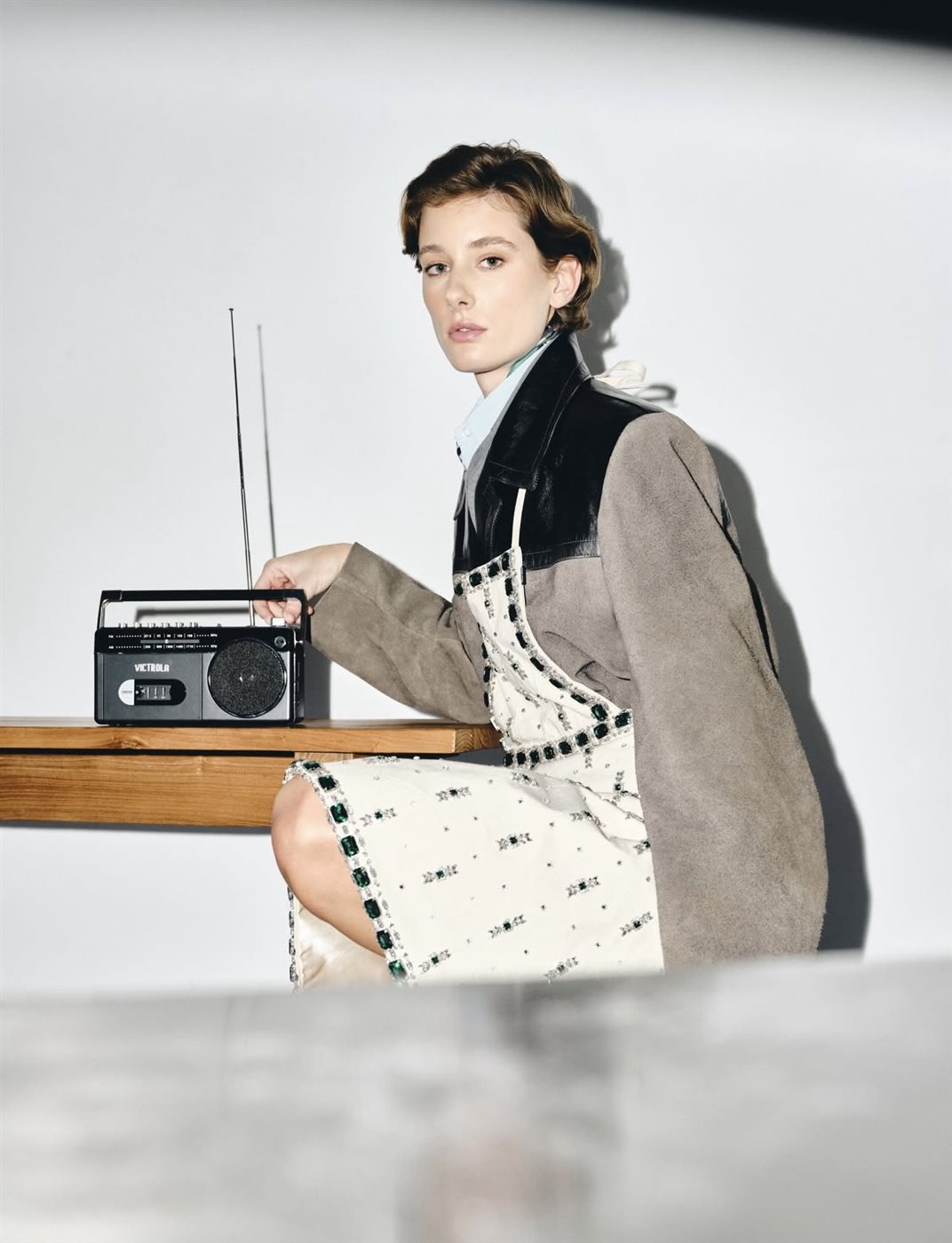 وتعتمد المجموعة على مفهوم الطبقات المتعددة والتركيبات غير المتوقعة، في أسلوب يعكس الجرأة والتجديد. فقدّمت الدار خامات مألوفة بطرق غير تقليدية، حيث ظهر قماش الكانفاس مرصعًا بالجواهر، في مفارقة تجمع بين البساطة والفخامة. كما أعيد تقديم الجلد بكرانيش تضفي عليه طابعًا أنثويًا ناعمًا، بينما جاء قماش السويد بكسرات غائرة تعكس حركة وانسيابية لافتة.