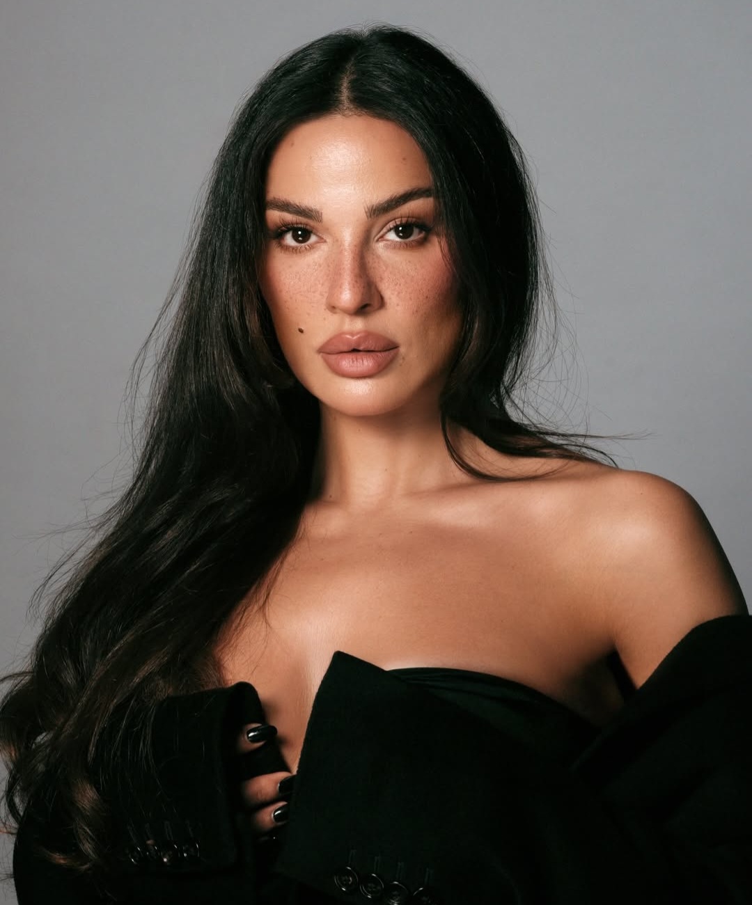 الإطلالة الأخيرة حملت طابعًا جريئًا ومتحررًا من القوالب التقليدية، حيث اختارت نادين بليزر باللون الأسود، لكن بأسلوب ارتداء غير مألوف، كاشفةً عن الأكتاف ومنطقة الظهر بطريقة مدروسة تعكس روح التحدي وكسر النمط الكلاسيكي.