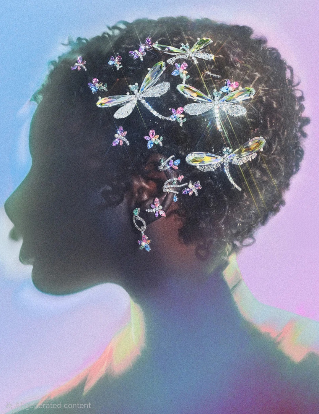 هذه العناصر لم تُقدَّم بشكل تقليدي، بل أعيد تشكيلها باستخدام كريستالات ملوّنة بدرجات قوس قزح، إلى جانب لآلئ ناعمة أضفت لمسة من الرقي والشفافية على التصاميم.