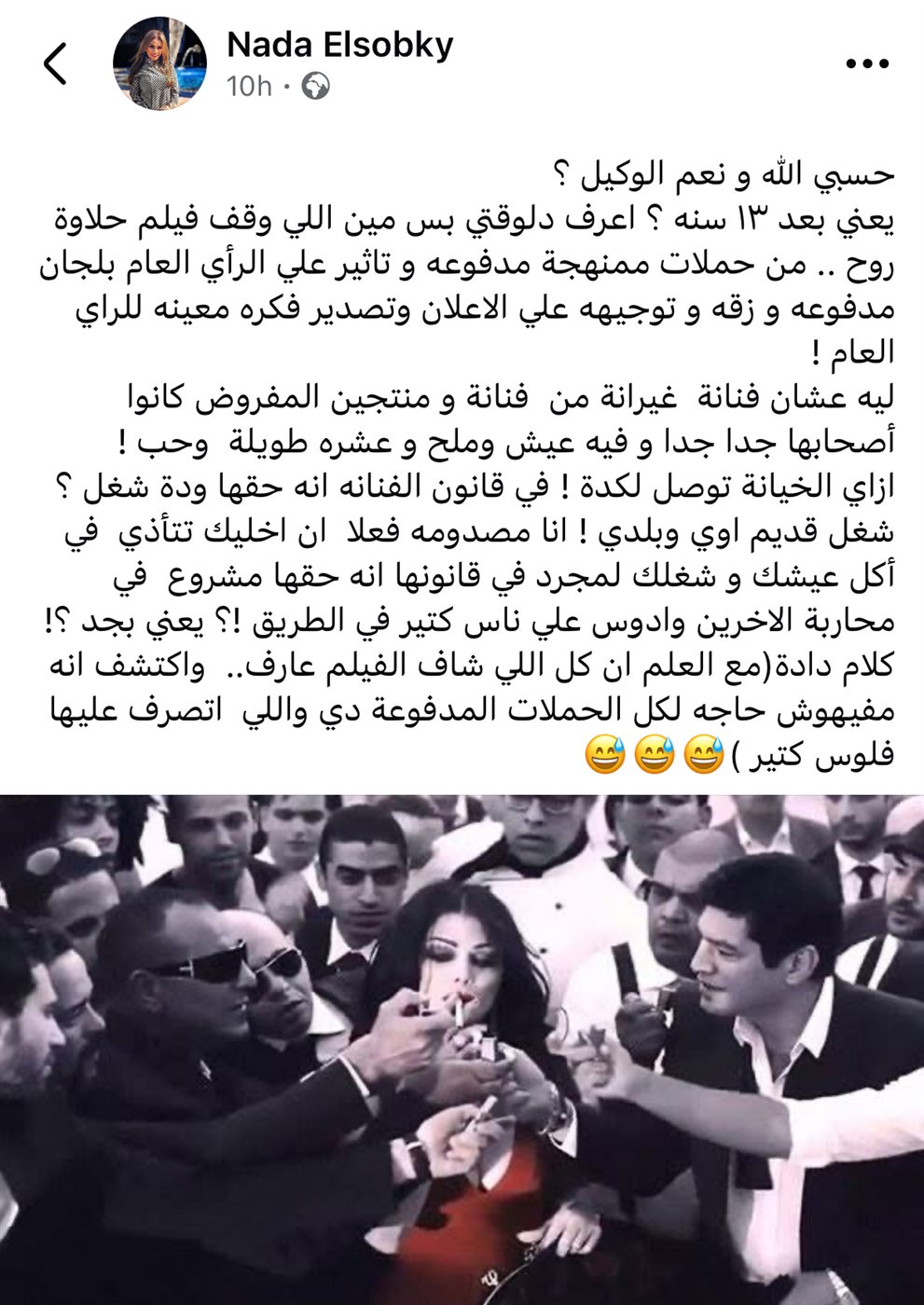 في منشورها وجهت ندى السبكي اتهامات غير مباشرة لجهات وأشخاص داخل الوسط الفني مشيرة إلى أن فيلم "حلاوة روح" تعرض لحملات ممنهجة ومدفوعة بهدف التأثير على الرأي العام.