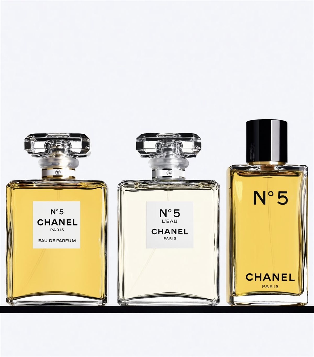 وتجسّد الإصدارات الثلاثة الحالية من N°5 فلسفة التنوع داخل الوحدة، حيث يعكس كل إصدار جانبًا مختلفًا من شخصية المرأة العصرية. يأتي N°5 Eau de Parfum كالتعبير الأكثر دفئًا وعمقًا، بفضل نغماته العنبرية الغنية التي تضفي إحساسًا بالفخامة والإغراء، ما يجعله الخيار المثالي للأمسيات والمناسبات الخاصة. في المقابل، يبرز N°5 Eau de Toilette بطابعه الأخف والأكثر إشراقًا، حيث تتداخل فيه اللمسات الخشبية مع النغمات الزهرية ليمنح إحساسًا بالانتعاش المتوازن، مناسبًا للاستخدام اليومي.
