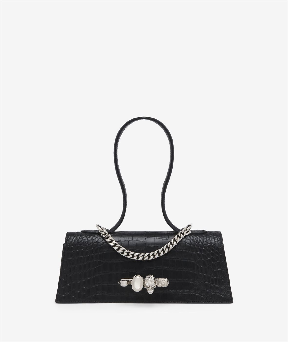 أما التفاصيل، فهي العنصر الأبرز في هذا التصميم، حيث تأتي الحقيبة مزينة بعناصر معدنية فضية تحمل توقيع Alexander McQueen، لتُضفي لمسة من الجرأة والتميّز. وغالبًا ما ترتبط هذه التفاصيل بهوية الدار التي تميل إلى الطابع الحاد والدرامي، وهو ما يجعل الحقيبة أكثر من مجرد إكسسوار، بل تعبيرًا عن شخصية قوية وواثقة.