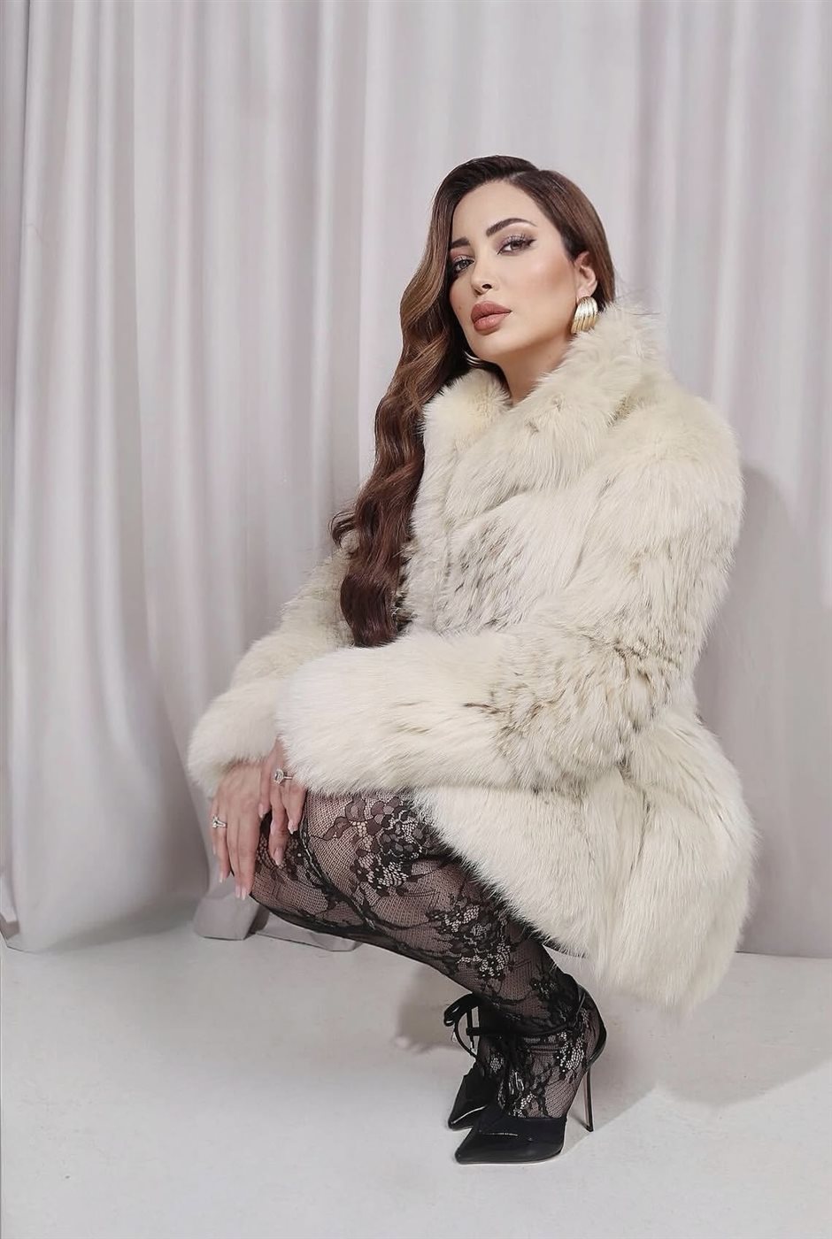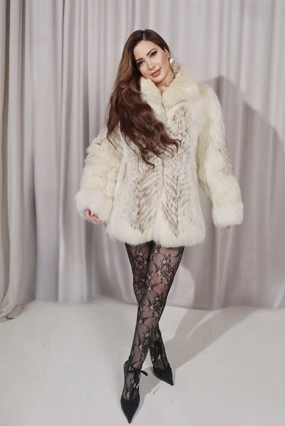 وقد اعتمدت نسرين في ظهورها الأخير على معطف فرو باللون الأبيض، منحها حضورًا فخمًا وملفتًا، خاصة مع تصميمه الكثيف الذي يعكس أجواء الشتاء الراقية. ونسّقت معه جوارب سوداء شفافة بنقشة دانتيل، أضافت لمسة جريئة وأنثوية في الوقت نفسه، إلى جانب حذاء بكعب عالٍ باللون الأسود عزّز من جاذبية الإطلالة ومنحها طابعًا عصريًا متكاملًا.