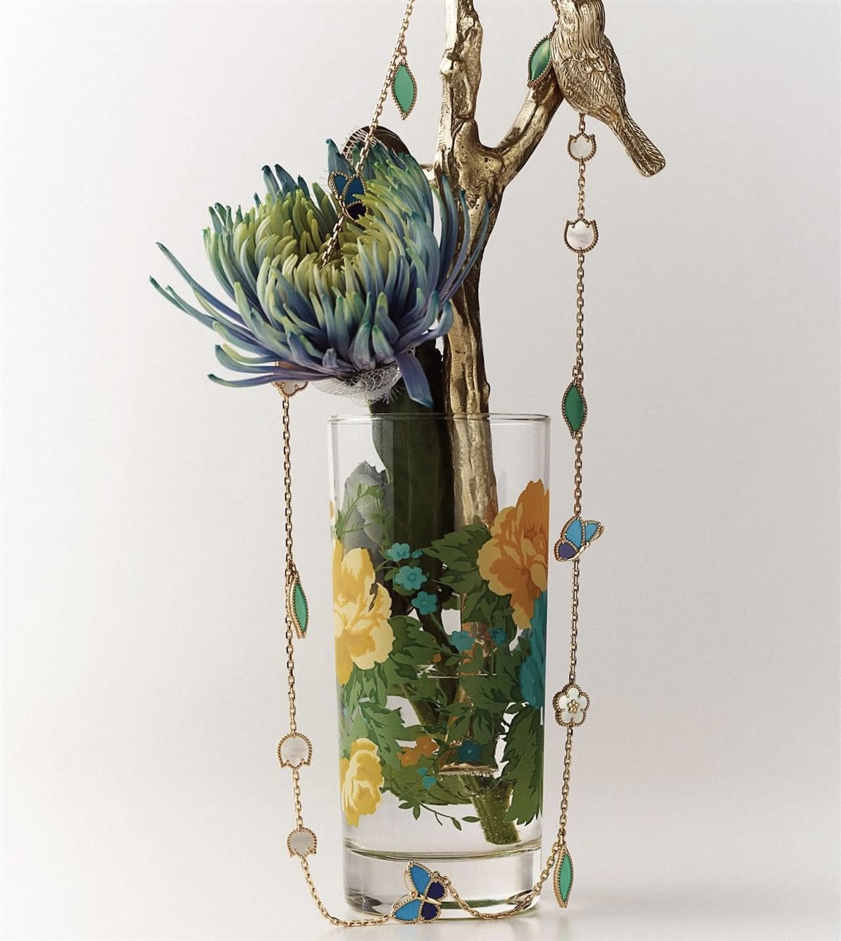 ومن ناحية التصميم، تعتمد القطع على تفاصيل دقيقة تبرز براعة الحرفيين في فان كليف أند آربلز، حيث يتم دمج الأحجار الطبيعية بطريقة تحافظ على نقائها وتبرز جمالها الفريد، وهو ما يعكس التزام الدار بالجودة والحرفية الراقية. كما أن اختيار الألوان لم يكن عشوائيًا، بل جاء ليحاكي سماء الربيع وصفاءه، ويمنح القطع طابعًا منعشًا يناسب مختلف الإطلالات.