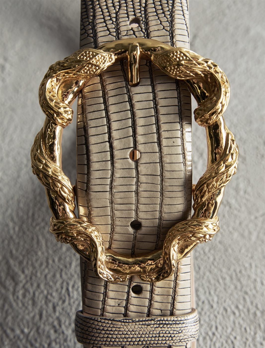 لطالما ارتبط اسم روبرتو كافالي بالنقوش الحيوانية التي أصبحت جزءًا من بصمته الإبداعية، إلا أن هذا الموسم يأتي بتفسير أكثر جرأة وأناقة، حيث تم توظيف اللون الذهبي ليمنح هذه النقوش بعدًا جديدًا يجمع بين الفخامة الكلاسيكية واللمسة العصرية. فالذهب هنا لا يُستخدم كعنصر تزييني فحسب، بل كوسيلة لإبراز التفاصيل وإضفاء إشراقة لافتة على الإكسسوارات.