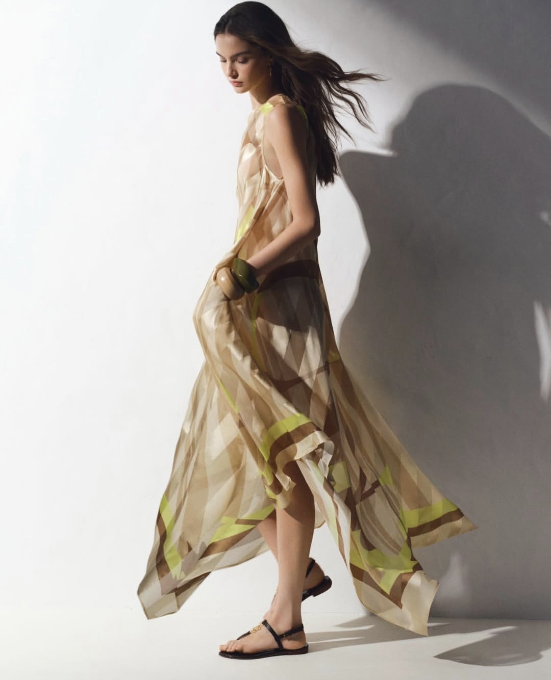 تميزت المجموعة بتنوعها بين القطع اليومية والفساتين الطويلة التي تصلح لأمسية هادئة على الشاطئ أو نزهة في النهار. الألوان الأساسية تميل إلى الأسود والأبيض والرمل، مع لمسات مشرقة من الأصفر الليموني والأخضر العشبي، في مزج متناغم يعكس المزاج الصيفي الحيوي والطاقة المشرقة.