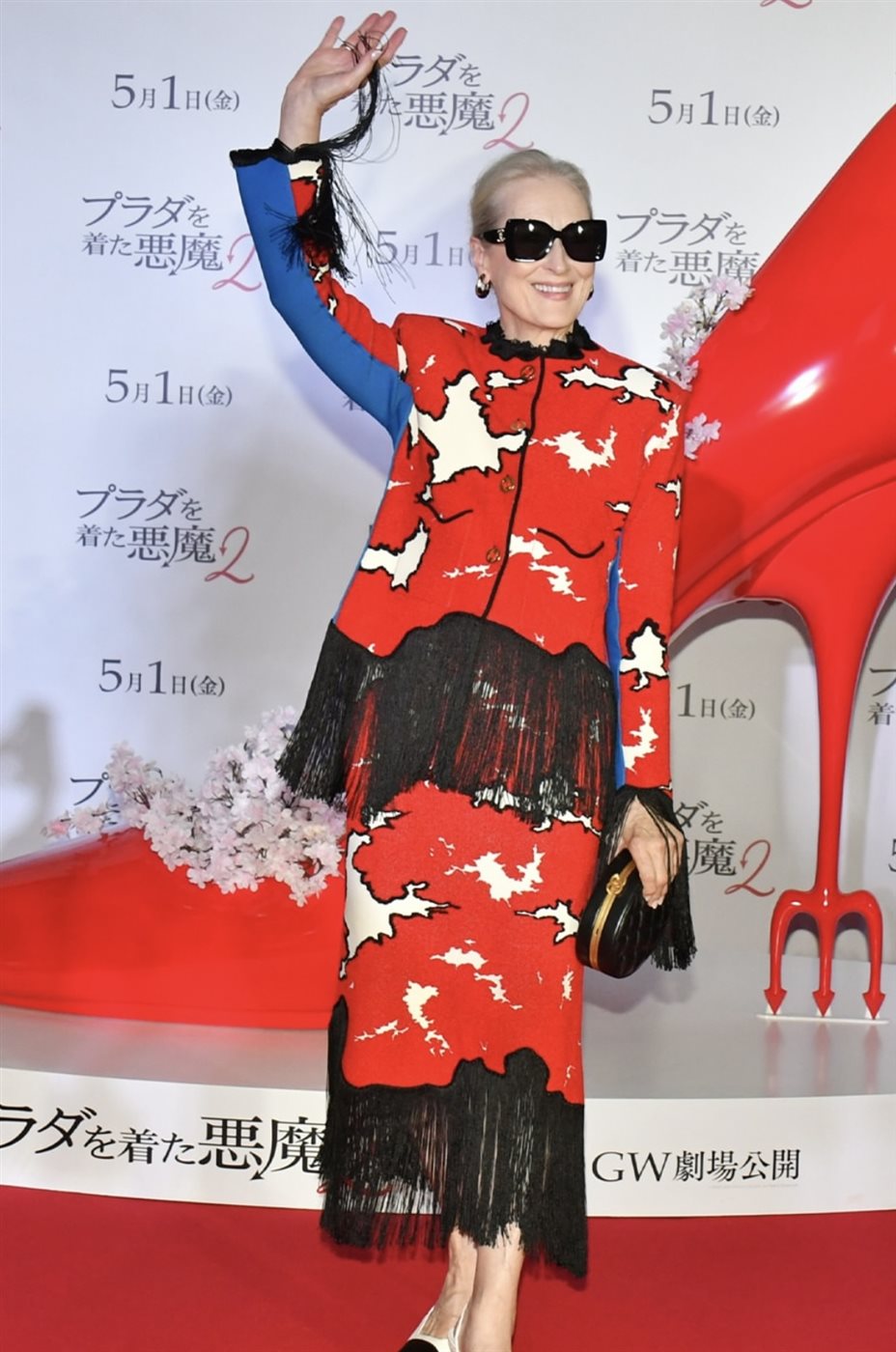 أما ميريل ستريب، التي تعود بدورها الأيقوني “ميراندا بريستلي”، فقد اختارت إطلالة قوية من Chanel من مجموعة Métiers d’Art، بتوقيع مرحلة Matthieu Blazy، حيث تألقت باللون الأحمر مع تفاصيل الشراشيب التي أضفت حركة وحيوية على الإطلالة، مؤكدة حضورها الطاغي وشخصيتها الحادة التي طالما ميزت الدور.