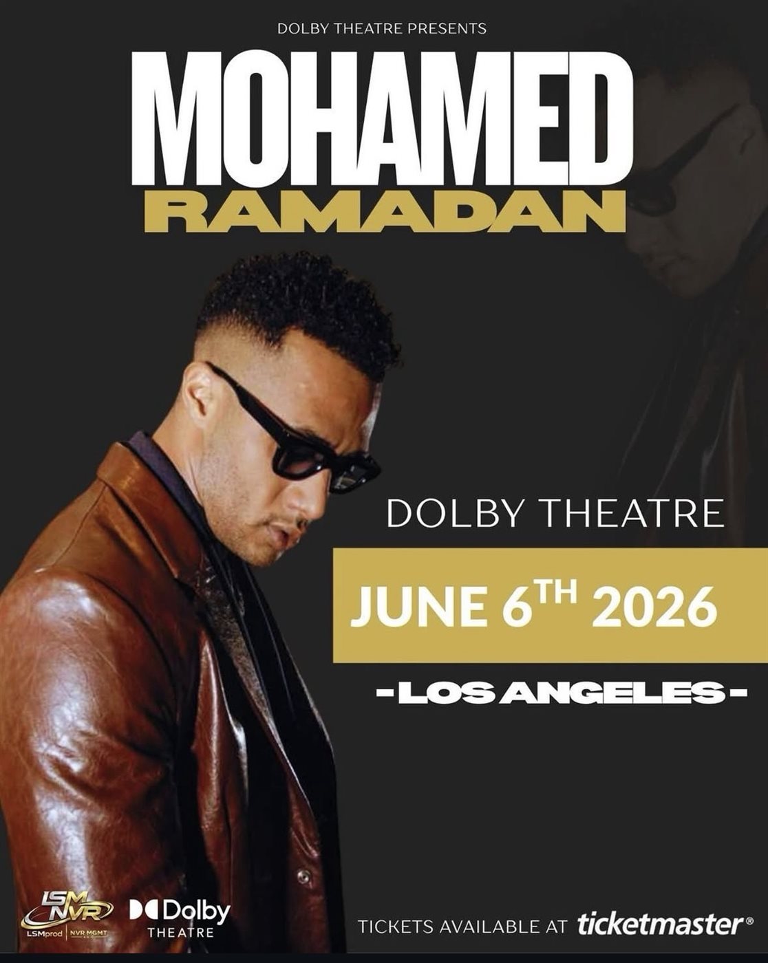 يستعد محمد رمضان لإحياء حفل غنائي ضخم يوم 6 يونيو 2026 على مسرح دولبي في مدينة لوس أنجلوس في خطوة تعد من أبرز محطاته الفنية العالمية خاصة أنه سيكون أول فنان مصري يحيي حفلا جماهيريا على هذا المسرح الشهير الذي يحتضن سنويا حفل توزيع جوائز الأوسكار.