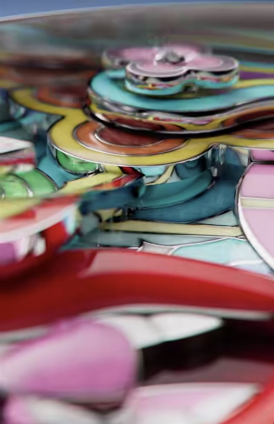 وتأتي الساعة بتصميم جريء يلفت الأنظار منذ اللحظة الأولى، إذ يتصدر الميناء مشهد فني ثلاثي الأبعاد يجمع بين عناصر مرِحة مثل الشفاه الحمراء، الزهور، والرموز المستوحاة من عالم الدار الأيقوني. هذا التكوين لا يُعد مجرد زخرفة، بل هو عمل ميكانيكي دقيق تتحرك مكوناته بتناغم، ليمنح الساعة طابعًا ديناميكيًا يدمج بين الساعات الراقية وفن الرسوم المتحركة.