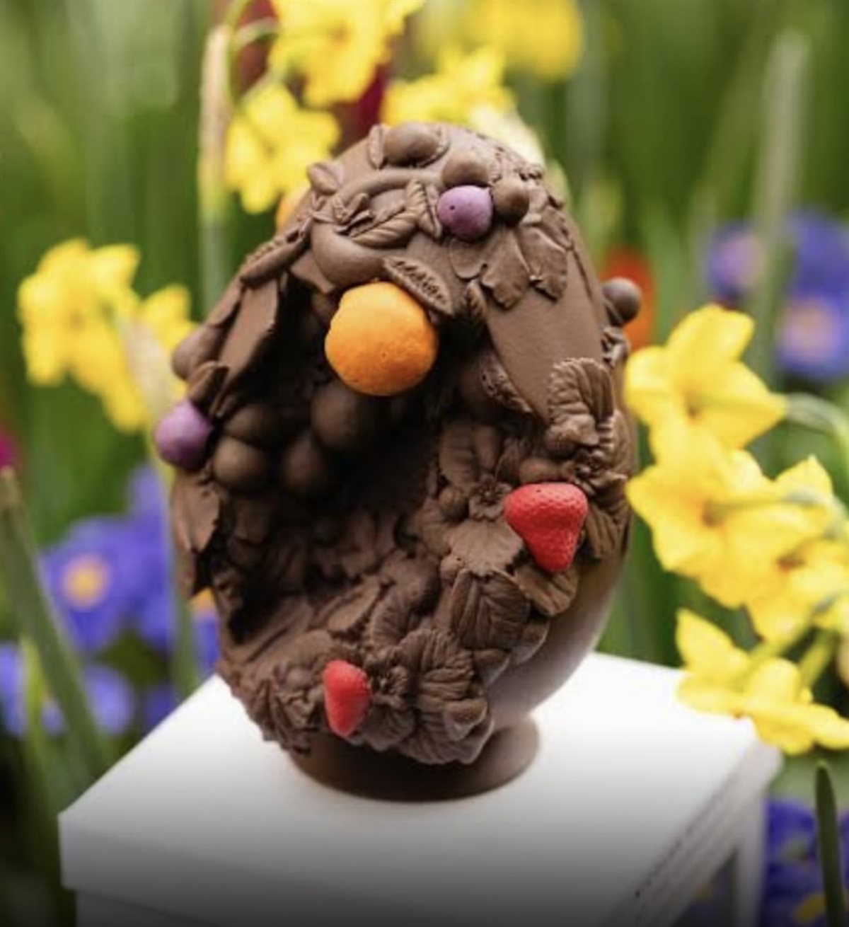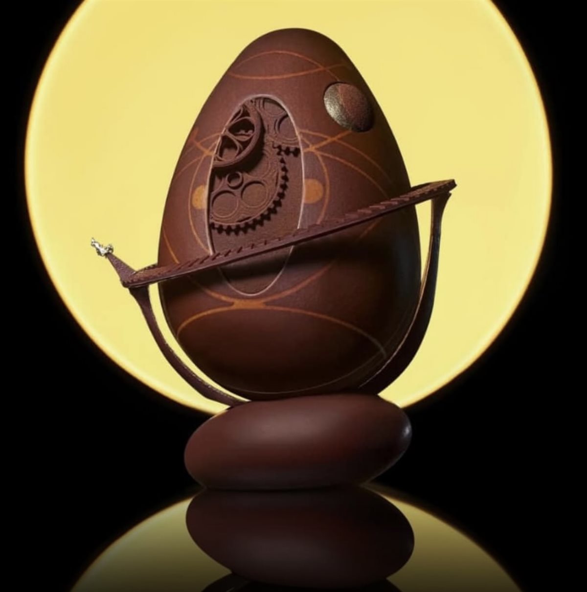 ومن بين القطع اللافتة أيضًا، جاءت بيضة Marchesi المصنوعة من الشوكولاتة البيضاء، والتي تميزت بزخارف دقيقة وألوان ناعمة مستوحاة من الطبيعة والحدائق، فيما قدم فندق The Connaught تصميمًا يجمع بين الشوكولاتة الداكنة وعناصر فاكهية ملونة، ليعكس تناغمًا بين الطعم والشكل.