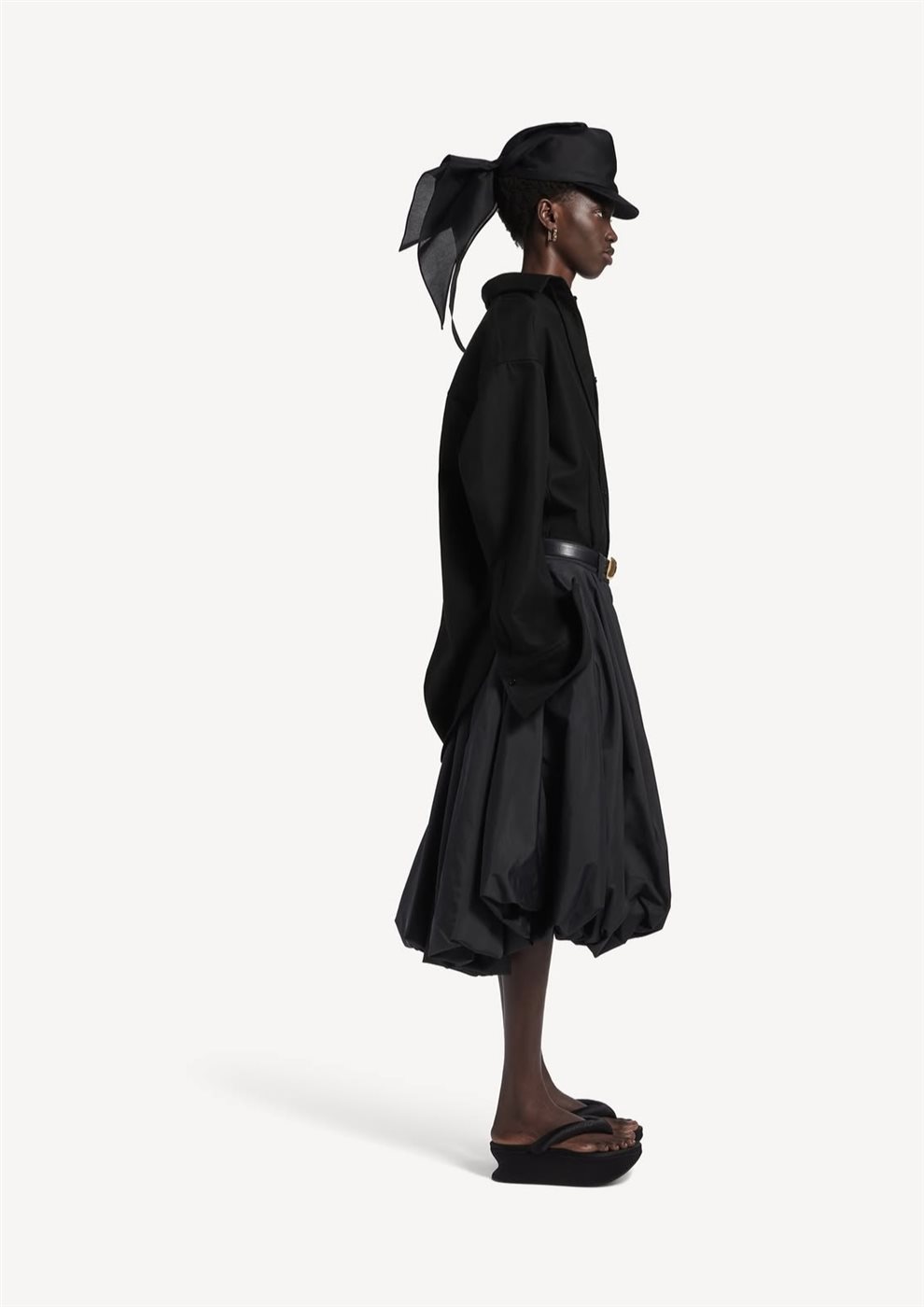 أما من حيث الألوان، فقد اعتمدت المجموعة بشكل أساسي على الدرجات الحيادية، وعلى رأسها الأسود، الذي جاء ليعكس قوة التصميم وبساطته في آن واحد. هذا الاختيار اللوني يعزز من حضور القطع، ويجعلها أكثر قابلية للتنسيق مع مختلف الإطلالات، سواء الكاجوال أو الرسمية.