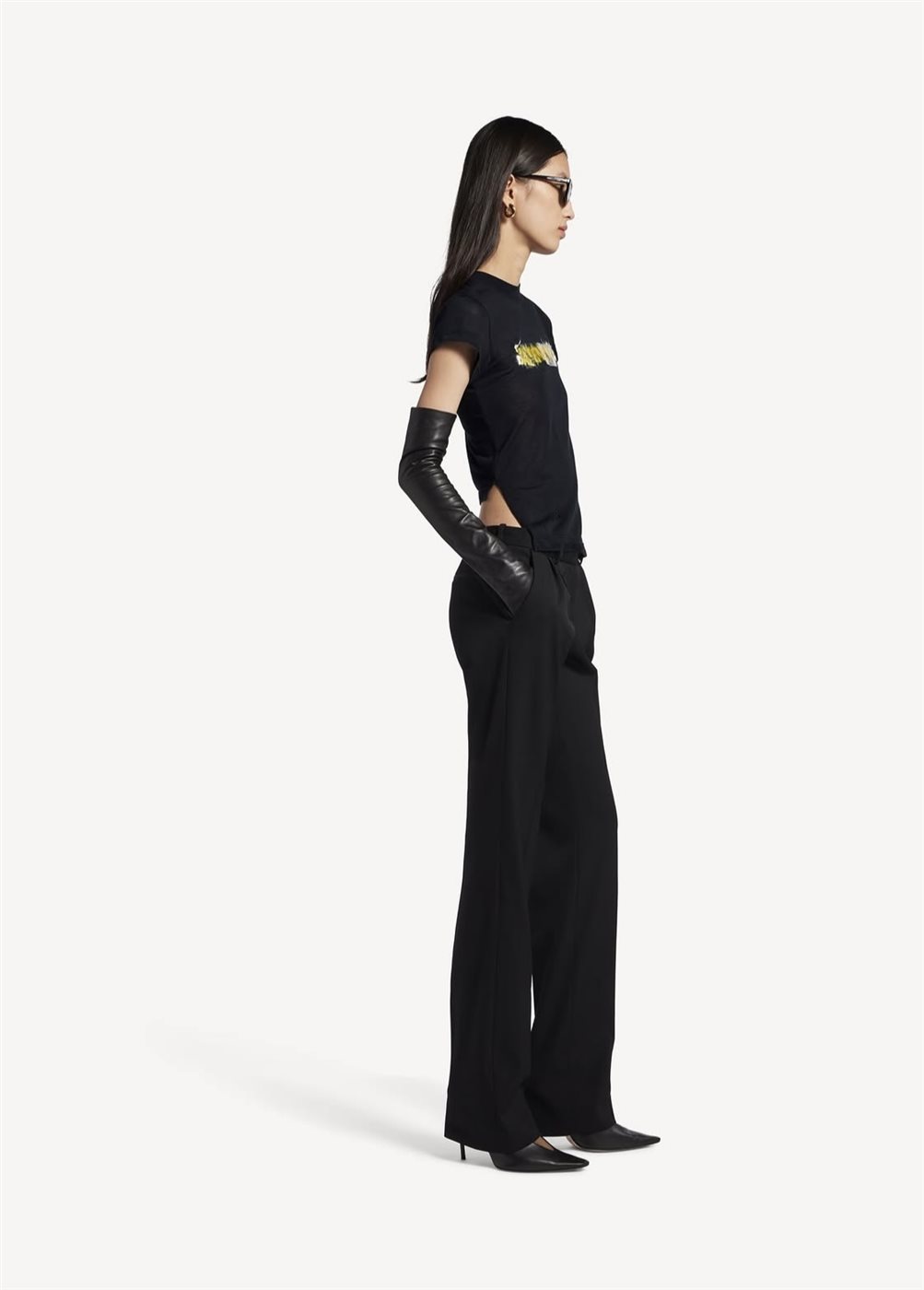 وقد استلهمت الدار خطوطها من أرشيفها الغني، حيث أعادت صياغة القصّات المعمارية التي اشتهرت بها، لتظهر في هيئة أكثر مرونة تتناسب مع إيقاع الحياة الحديثة. فبدلاً من التصاميم الصارمة، قدمت Balenciaga قطعاً تعتمد على الانسيابية والراحة، مع الحفاظ على هوية الدار القائمة على البناء الهندسي الدقيق. ويبرز ذلك في القطع الأساسية مثل الجاكيتات الجلدية، والبناطيل العملية، والقمصان ذات التفاصيل البسيطة التي تحمل في طياتها لمسات فنية غير تقليدية.