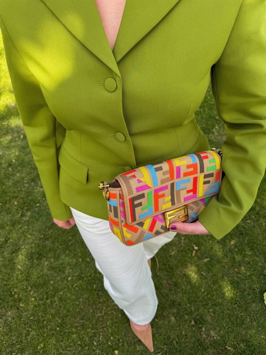 وأكملت اطلالتها بحقيبة متعددة الألوان من دار Fendi، والتي منحت اللوك لمسة مرحة وعصرية، وكسرت حدة الألوان الموحدة بأسلوب ذكي يعكس جرأة مدروسة.