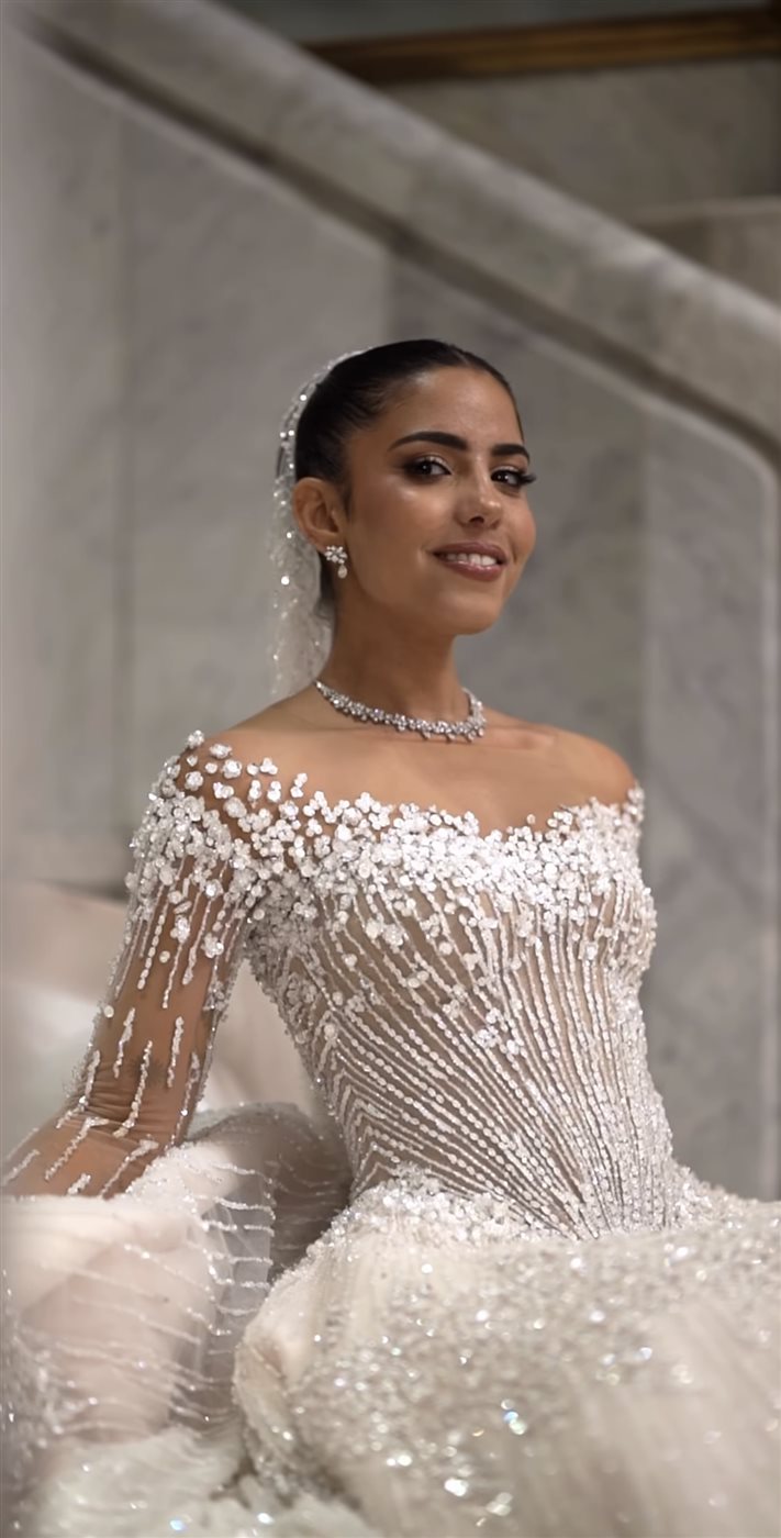 عهد السعدي تتألق بفستان أميري مرصّع في ليلة زفافها بتوقيع مرام برهان