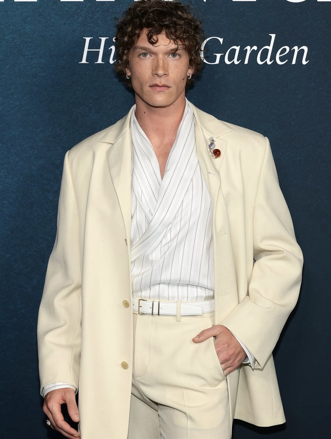 أما Connor Storrie فاختار إطلالة كلاسيكية بلمسة عصرية، حيث ارتدى بدلة باللون الكريمي مع قميص بتصميم متقاطع، ما أضفى طابعًا مختلفًا وغير تقليدي على اللوك الرجالي. وقد نجح في تحقيق توازن بين الأناقة والجرأة، خاصة مع إضافة بروش فاخر يعكس هوية الحدث.