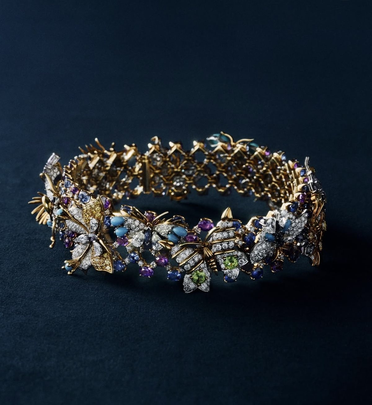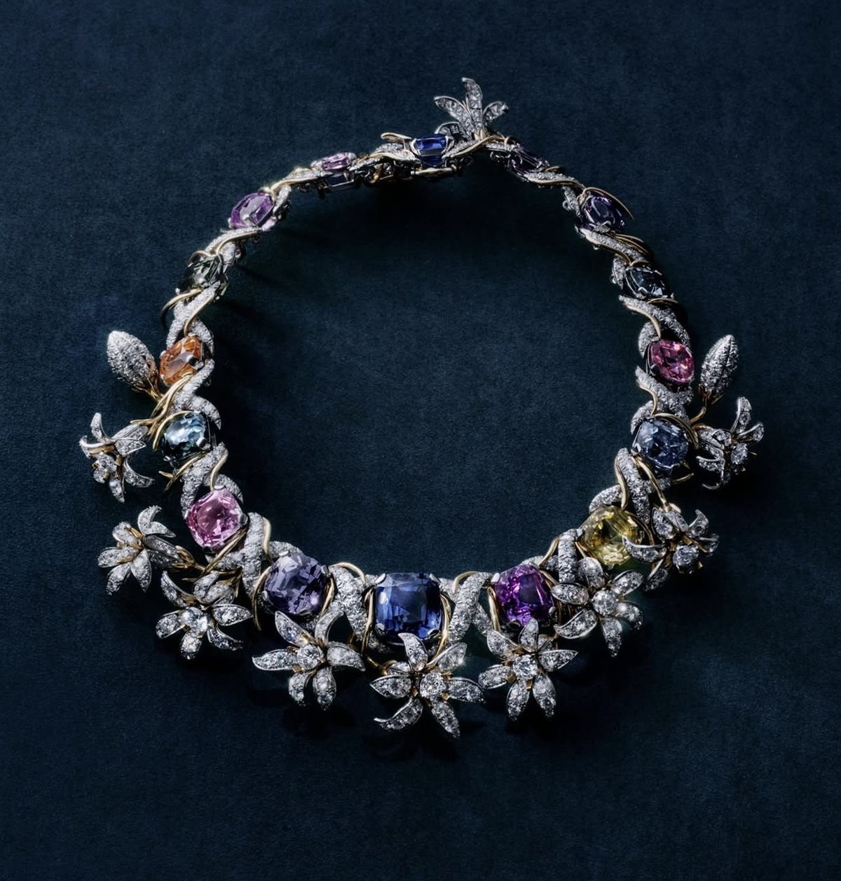 وتعتمد المجموعة على مفردات تصميمية مستوحاة من الحدائق الغنّاء، حيث تتداخل الزهور والأوراق بتفاصيل دقيقة مرصعة بالألماس والأحجار الكريمة الملونة. ويبرز في هذه القطع حس الحركة والانسيابية الذي اشتهر به Schlumberger، إذ تبدو العناصر وكأنها تنبض بالحياة، في ترجمة بصرية ساحرة للطبيعة.