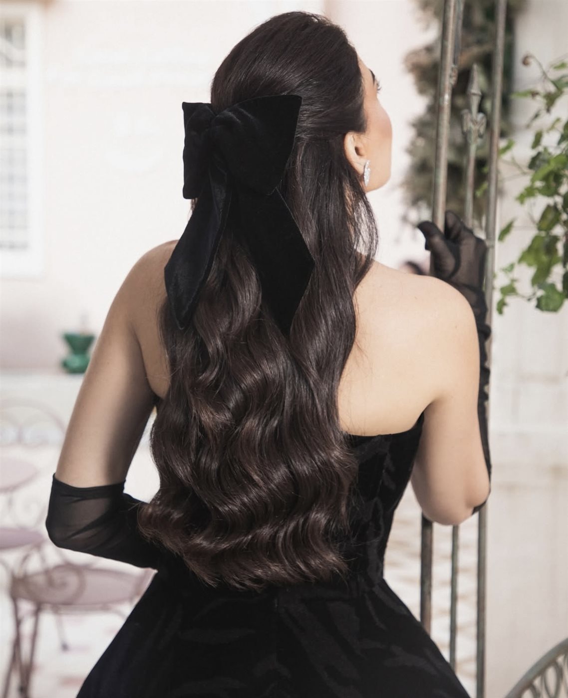 أما العنصر الأكثر لفتًا في الإطلالة، فكان اعتمادها على القفازات الطويلة الشفافة باللون الأسود، والتي أعادت إلى الأذهان سحر إطلالات هوليوود الكلاسيكية. هذا التفصيل لم يكن مجرد إضافة جمالية، بل عنصر أساسي منح اللوك طابعًا دراميًا أنثويًا، وعكس جرأة ناعمة في اختيار التفاصيل. وقد نسّقت القفازات مع مجموعة من المجوهرات اللامعة، شملت أساور وخواتم مرصعة أضافت بريقًا متوازنًا دون أن تطغى على بساطة الفستان.