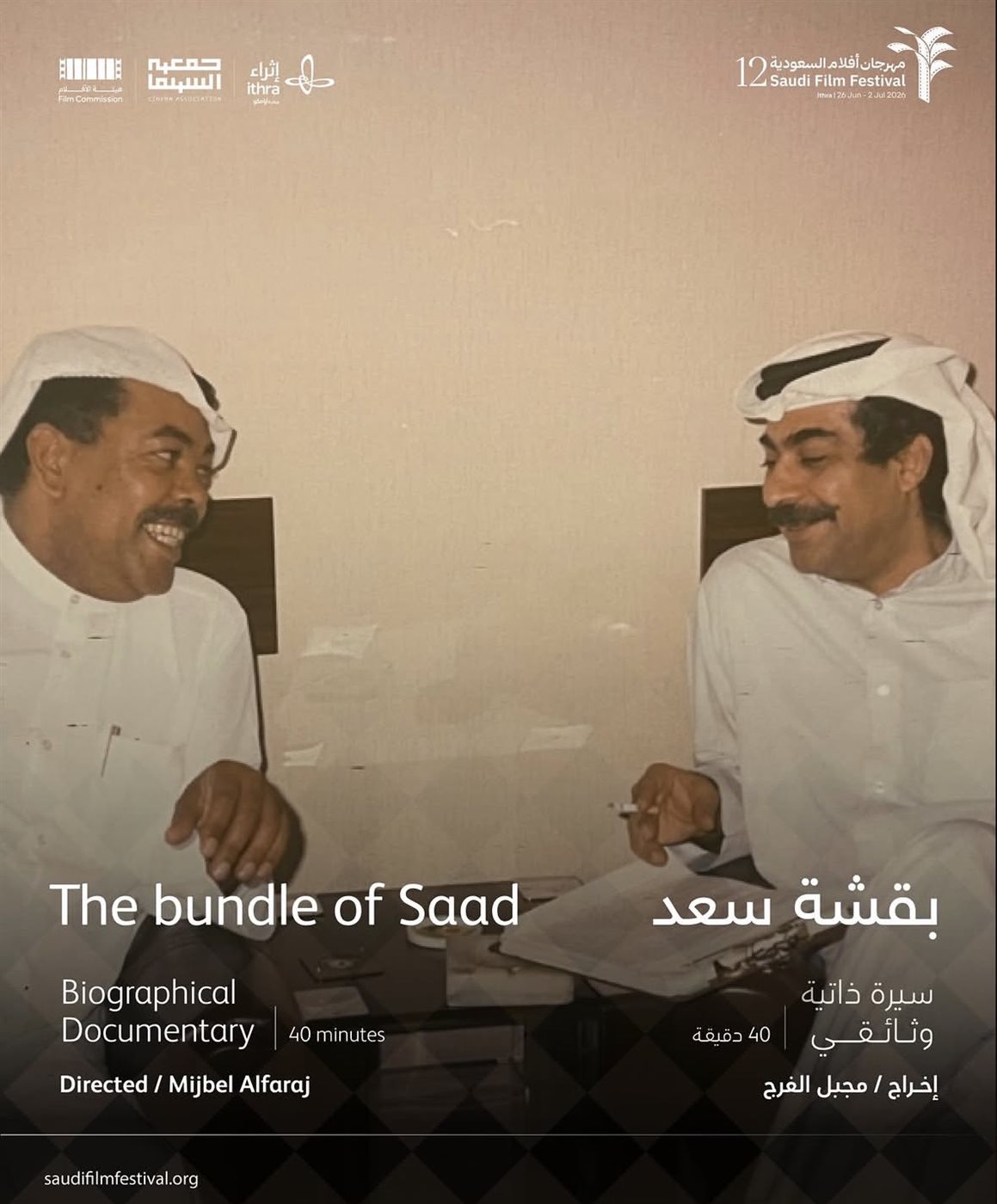 ونشر الحساب الرسمي للمهرجان بوستر الأفلام الوثائقية مرفقا بتعليق جاء فيه:“أفلام المسابقة الوثائقية في الدورة الثانية عشرة من مهرجان أفلام السعودية تأخذنا إلى زوايا أكثر عمقا وأبعاد أكثر اتساعا للتاريخ والثقافة والناس”.