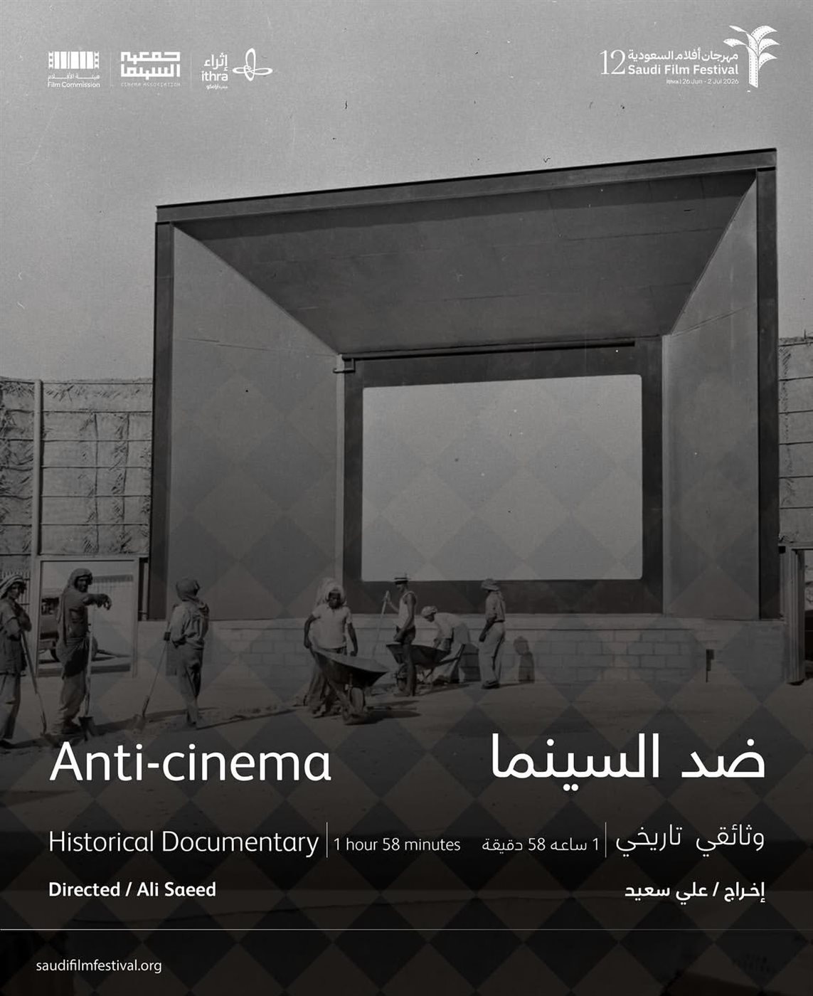 فيلم “ضد السينما”: وثائقي تاريخي، مدته ساعة و58 دقيقة، من إخراج علي سعيد، ويتناول تحولات مرتبطة بتاريخ السينما ورؤيتها.