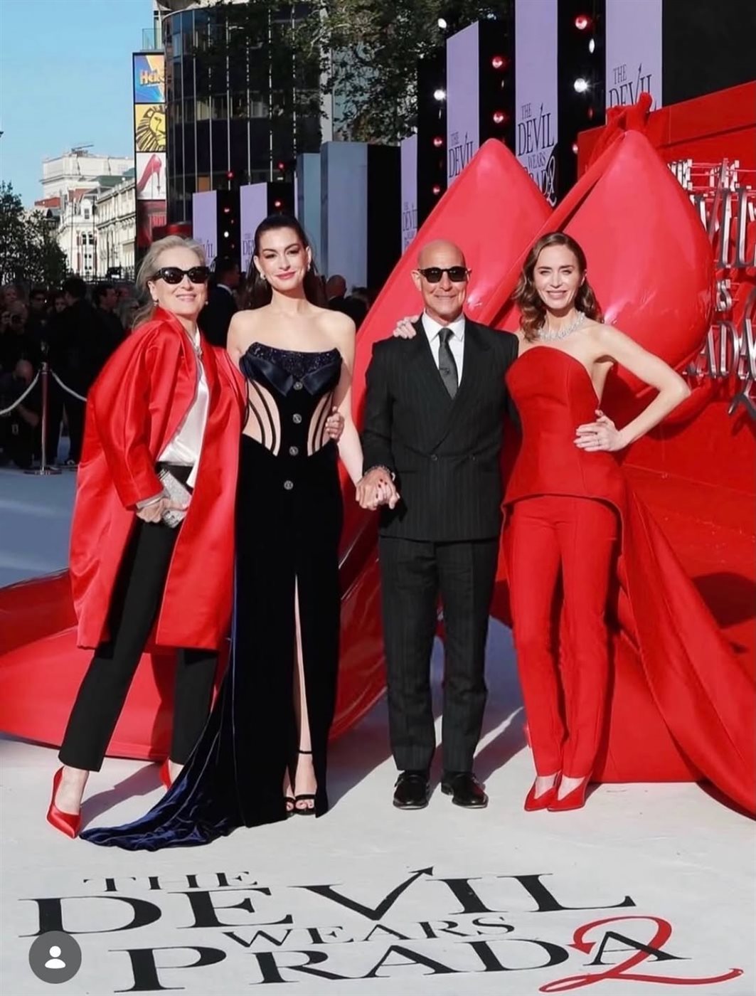 خطفت ميريل ستريب الأنظار بإطلالة ساحرة عكست قوة شخصيتها، إذ تعمدت اختيار حذاء أحمر بكعب عالٍ مدبب، في إشارة رمزية واضحة لشخصيتها الأسطورية في الفيلم "ميراندا بريستلي".