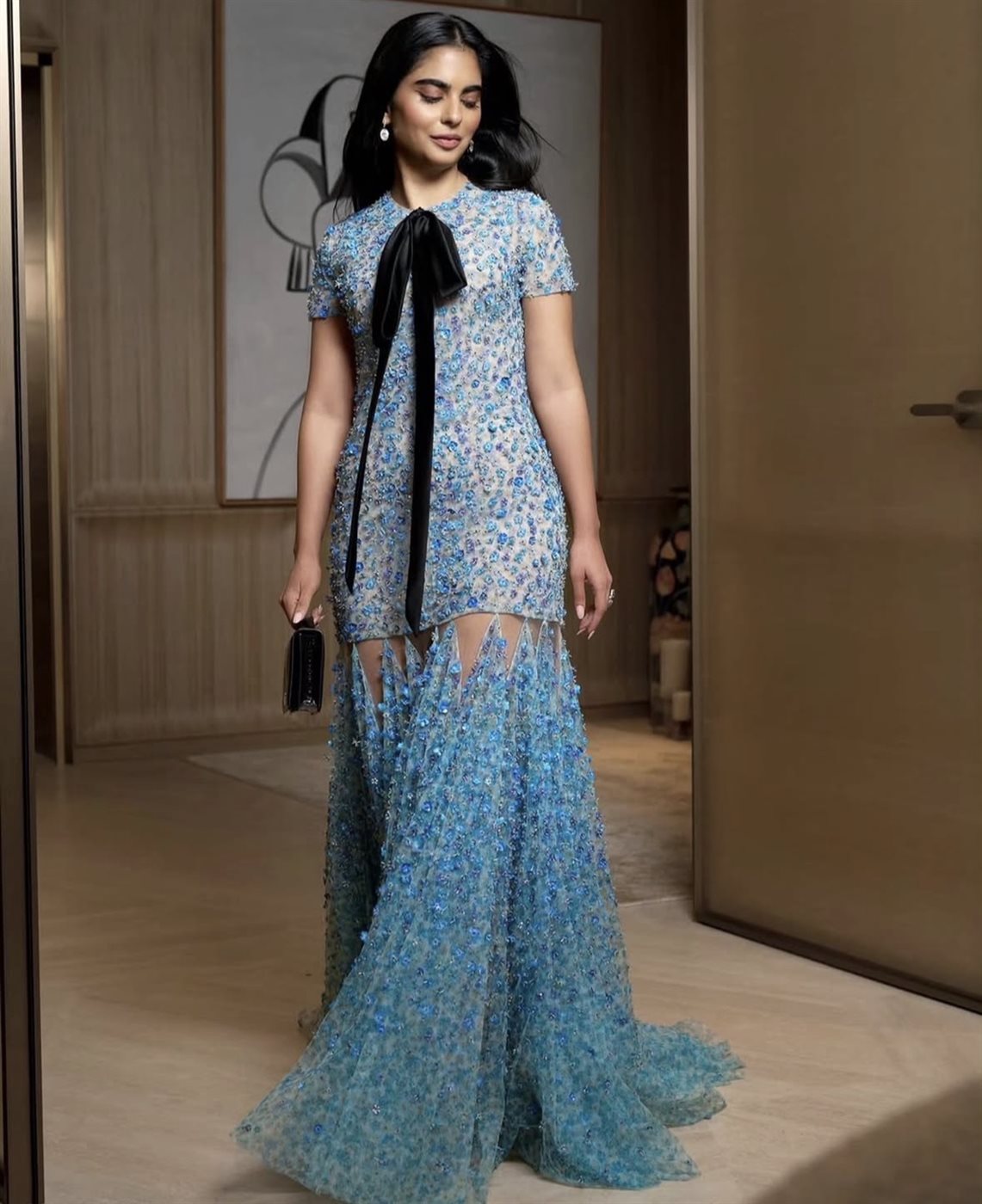 أما في حفل ما بعد الإطلاق فاختارت فستانا أسود أنيقا جاء بتصميم ضيق من الأعلى وواسع من الأسفل وظهرت برفقة إيشا أمباني حيث التقطتا الصور سويا واختتمتا اللقاء بعناق ودي لاقى تفاعلا كبيرا.