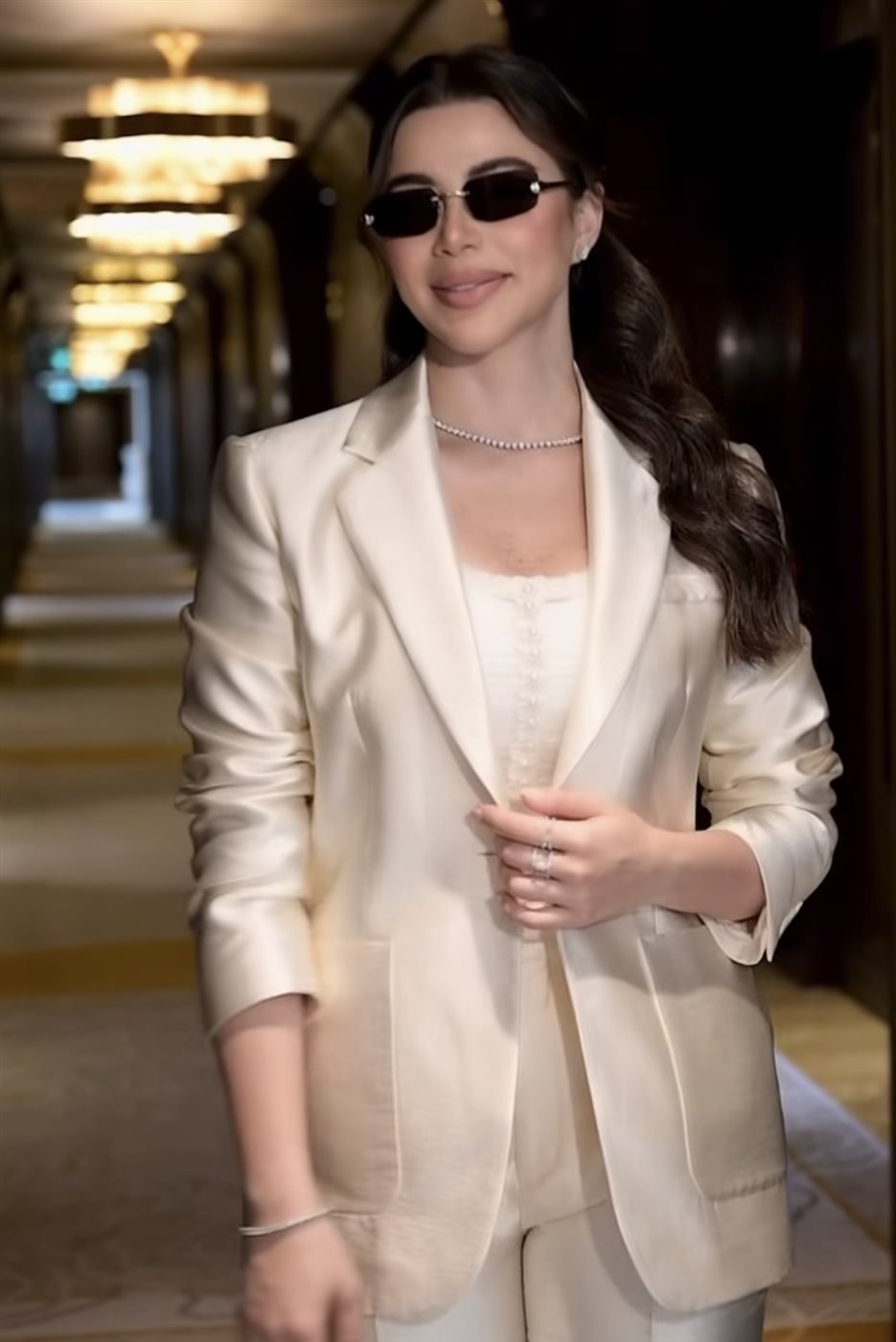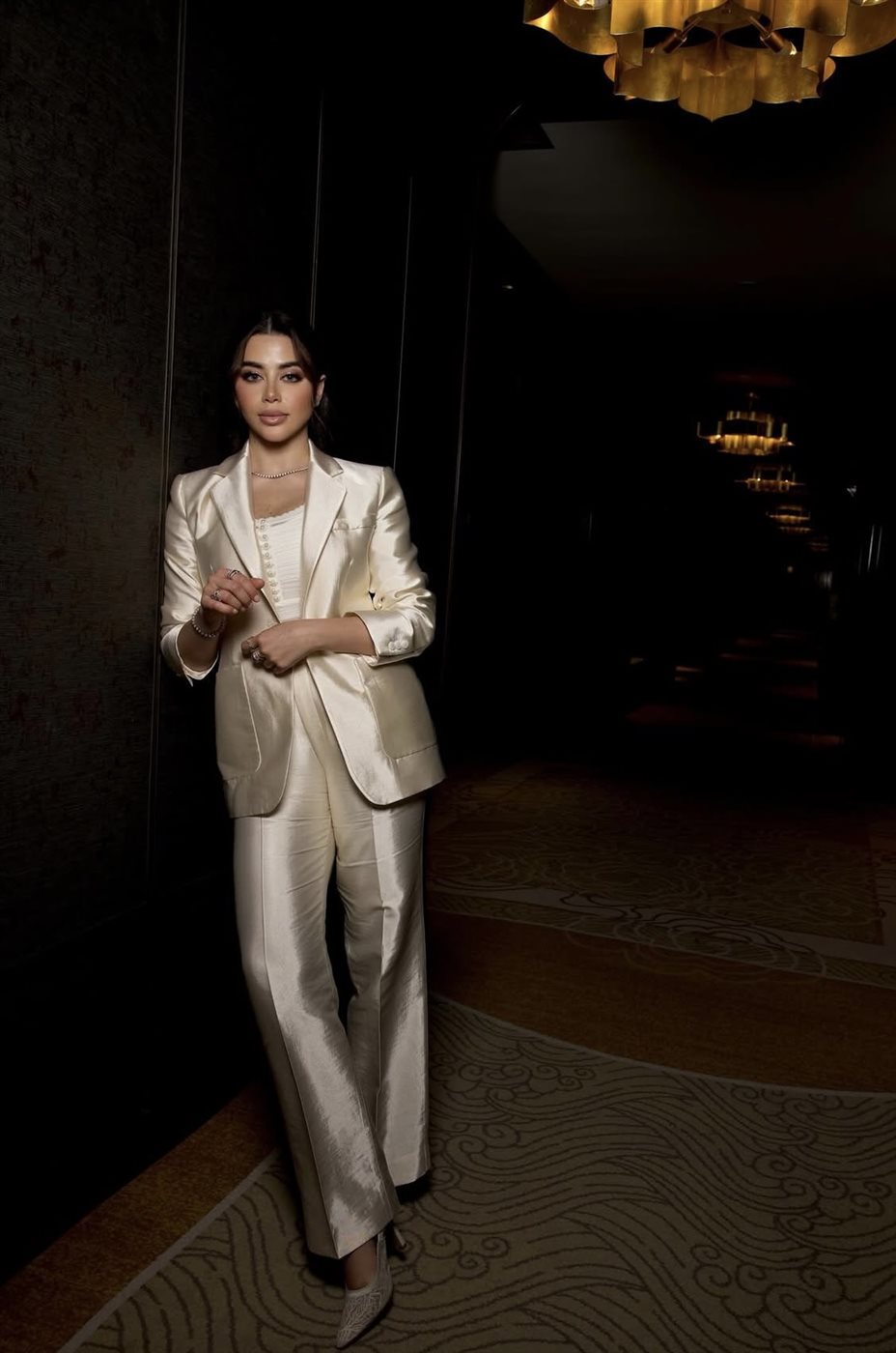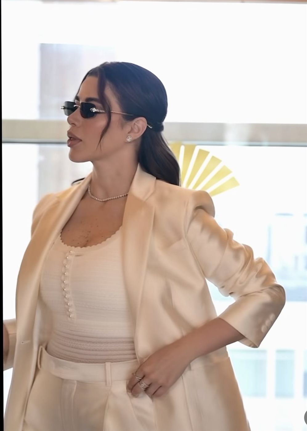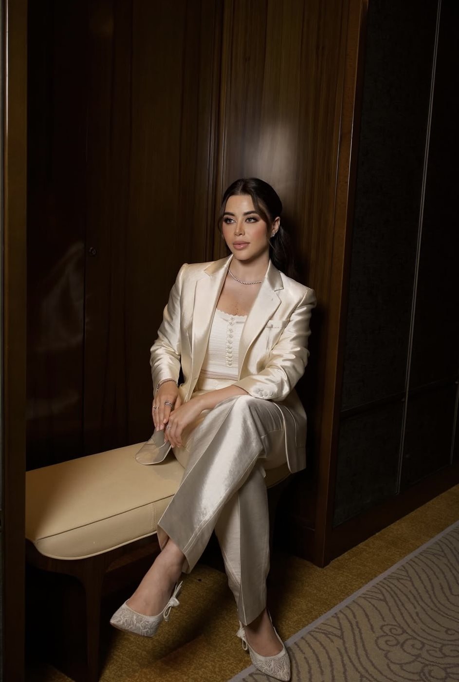 الإطلالة اعتمدت على أسلوب “المونوكروم”، حيث نسّقت يارا قطع الأزياء بنفس التدرج اللوني، وهو ما يُعد من أبرز اتجاهات الموضة الحديثة، إذ يمنح مظهراً متكاملاً وأنيقاً دون تعقيد. وقد تميزت البدلة بقماش لامع خفيف يعكس الإضاءة بشكل راقٍ، مع بنطلون واسع يمنح حرية الحركة ويعزز الإحساس بالفخامة، بينما أضاف البليزر المصمم بقصة دقيقة لمسة رسمية جذابة تناسب السهرات والمناسبات الخاصة.