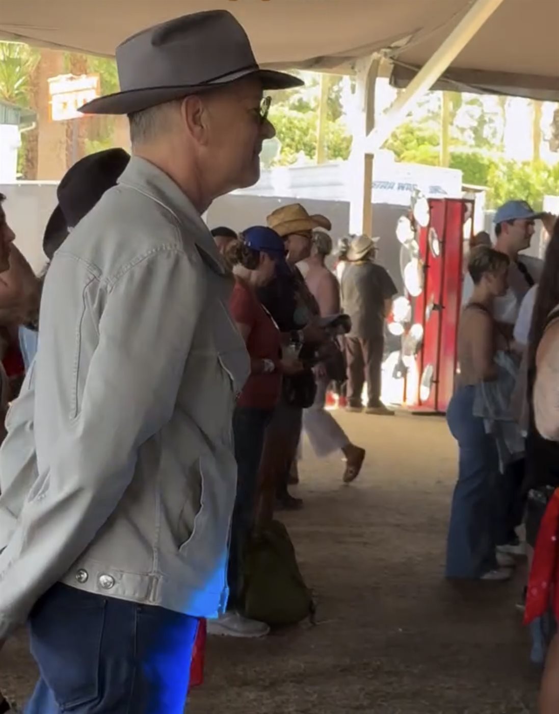 توم هانكس يخطف الأنظار برقصة وغناء عفوي دعما لنجله في Stagecoach 2026